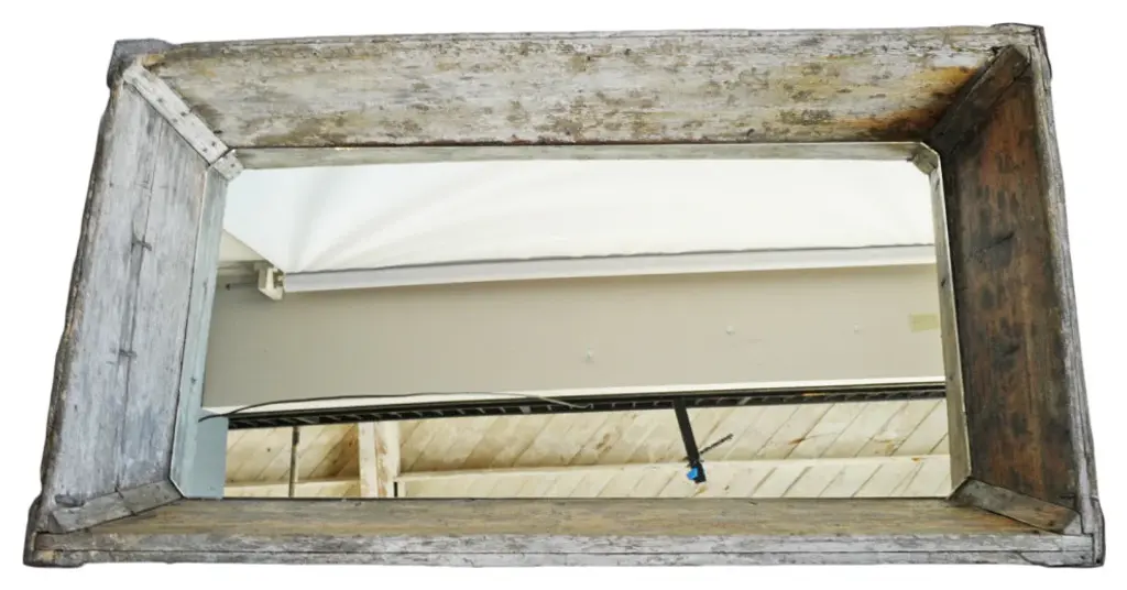 Montana Mirror - Industrial Style with Metal Corner BracketsHandmade in the USA, and available in several sizes, including custom sizes, this rustic mirror will highlight any rustic or casual decor. This mirror is great over the mantel or across from windows to enhance the light in a room. Don''t have a mantelpiece? Try hanging this frame over your favorite leather couch as a point of interest in the room. The metal corner brackets add a little extra industrial flair to tie in other modern decor. D-ring hanging hardware is included with each mirror allowing you to decide whether to hang it horizontally or vertically.Custom orders for our rustic barnwood mirrors are available. Contact us at 888-653-22576 for pricing on a custom size mirror.Mirror sizes are listed according to exterior dimensionsFrame width is 3.5 inches, depth is .75 inchMetal corner bracketsShips Via FedEx in 2 - 3 weeksHandcrafted in USA• • • PLEASE NOTE: Due to the nature of reclaimed wood, your completed frame''s colors, textures, knots, and grains may vary slightly from the one you see pictured here. Each and every piece is one-of-a-kind which adds to the charm and character of your finished mirror frame.