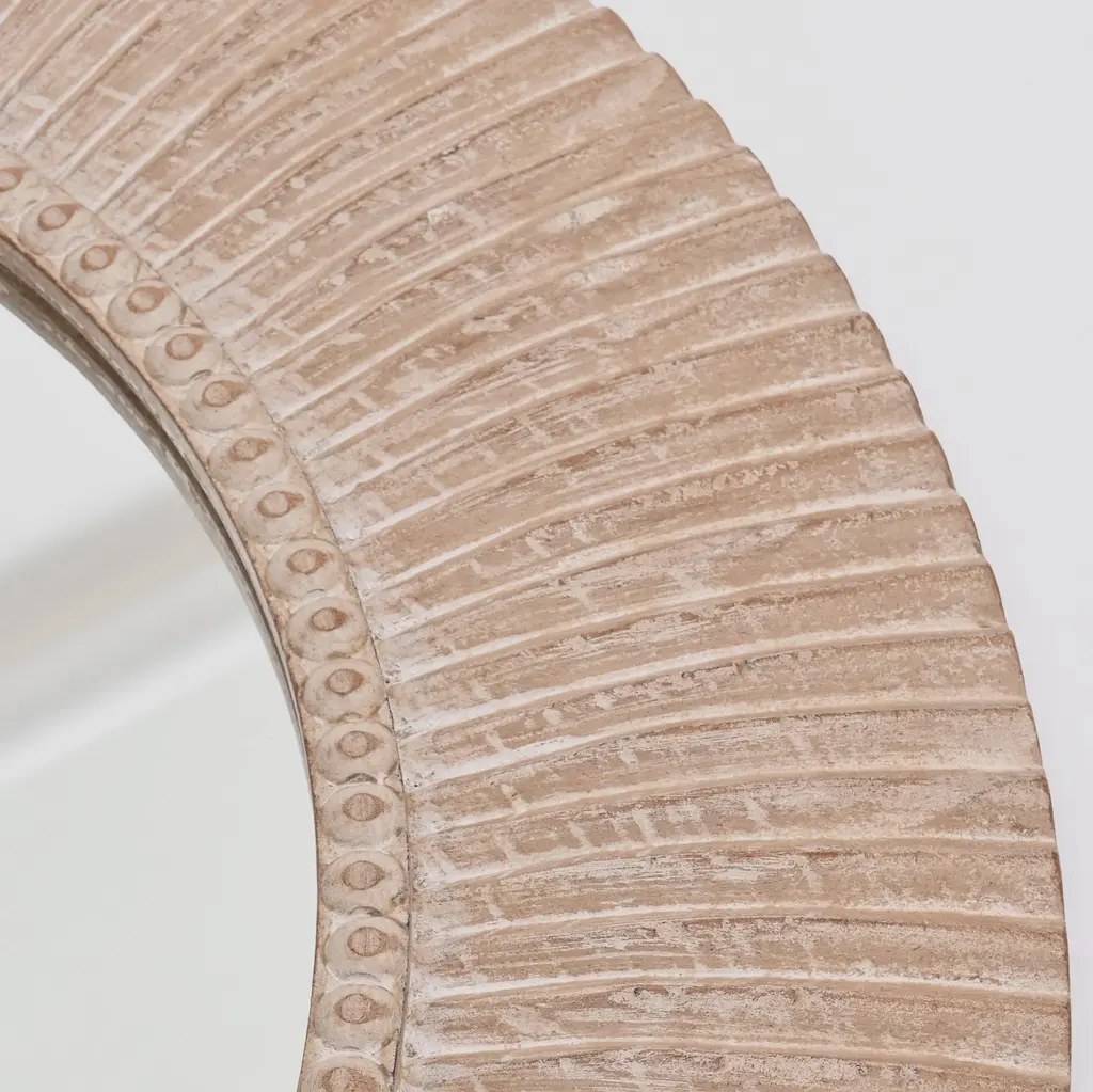 Rustic Farmhouse Style Handcarved Wooden Decorative Hanging Wall Mirror-36"