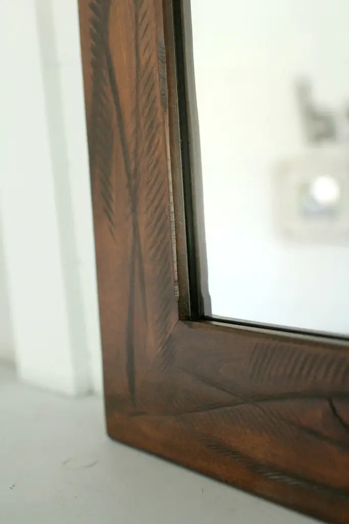 Sedona Style Rustic Mirror with Heavy DistressingThis beautifully-crafted rustic wood mirror features a natural alder wood frame with rich walnut stain and a dark glaze that highlights the texture and color tones in the heavily-distressed wood frame. While this mirror has been greatly distressed, it has a nice finish which keeps it from looking too rough. The Sedona mirror would look wonderful in a log cabin or a modern farmhouse. The distressing gives the wood an aged look and because it is hand-made, no two mirrors are exactly alike. You''ll love knowing you have an original piece.D-ring hanging hardware is included with each mirror allowing you to decide whether to hang it horizontally or vertically. Frame width is 3.5 inches, depth is .75 inchNatural alder woodDark walnut stain with espresso glazeMirror sizes are listed according to exterior dimensionsHandcrafted in USAPLEASE NOTE: Because of the possible variances in computer monitor colors and reclaimed wood colors, your completed frame may vary slightly in color and texture from the one you see pictured here.