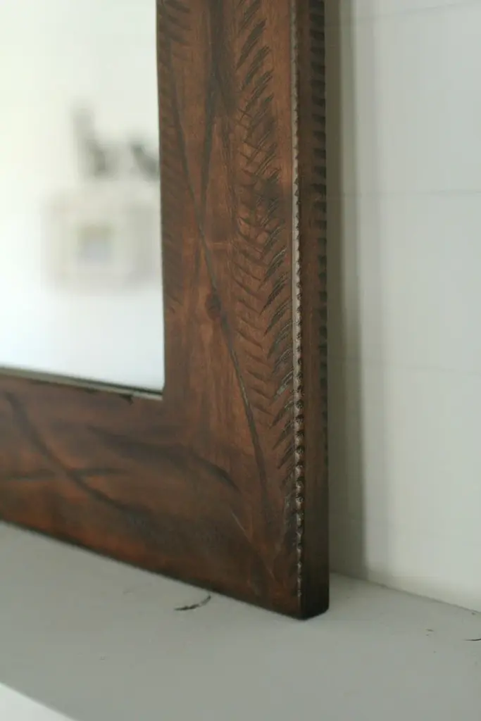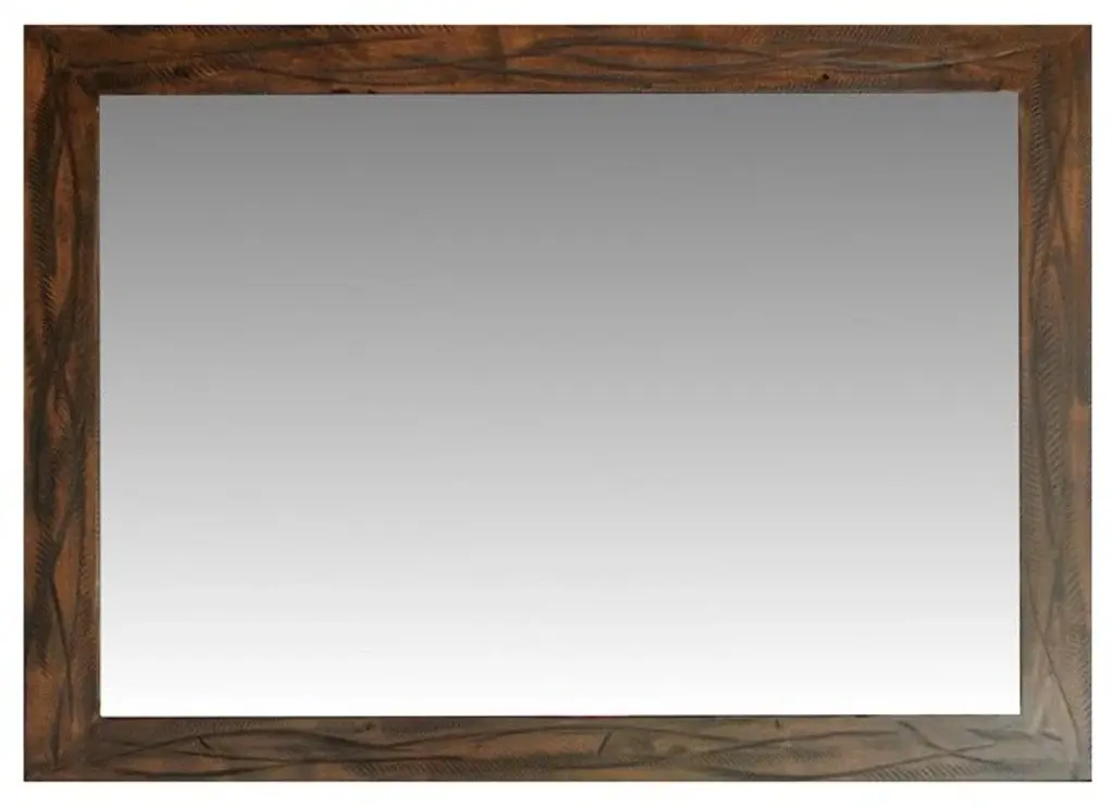 Sedona Style Rustic Mirror with Heavy DistressingThis beautifully-crafted rustic wood mirror features a natural alder wood frame with rich walnut stain and a dark glaze that highlights the texture and color tones in the heavily-distressed wood frame. While this mirror has been greatly distressed, it has a nice finish which keeps it from looking too rough. The Sedona mirror would look wonderful in a log cabin or a modern farmhouse. The distressing gives the wood an aged look and because it is hand-made, no two mirrors are exactly alike. You''ll love knowing you have an original piece.D-ring hanging hardware is included with each mirror allowing you to decide whether to hang it horizontally or vertically. Frame width is 3.5 inches, depth is .75 inchNatural alder woodDark walnut stain with espresso glazeMirror sizes are listed according to exterior dimensionsHandcrafted in USAPLEASE NOTE: Because of the possible variances in computer monitor colors and reclaimed wood colors, your completed frame may vary slightly in color and texture from the one you see pictured here.