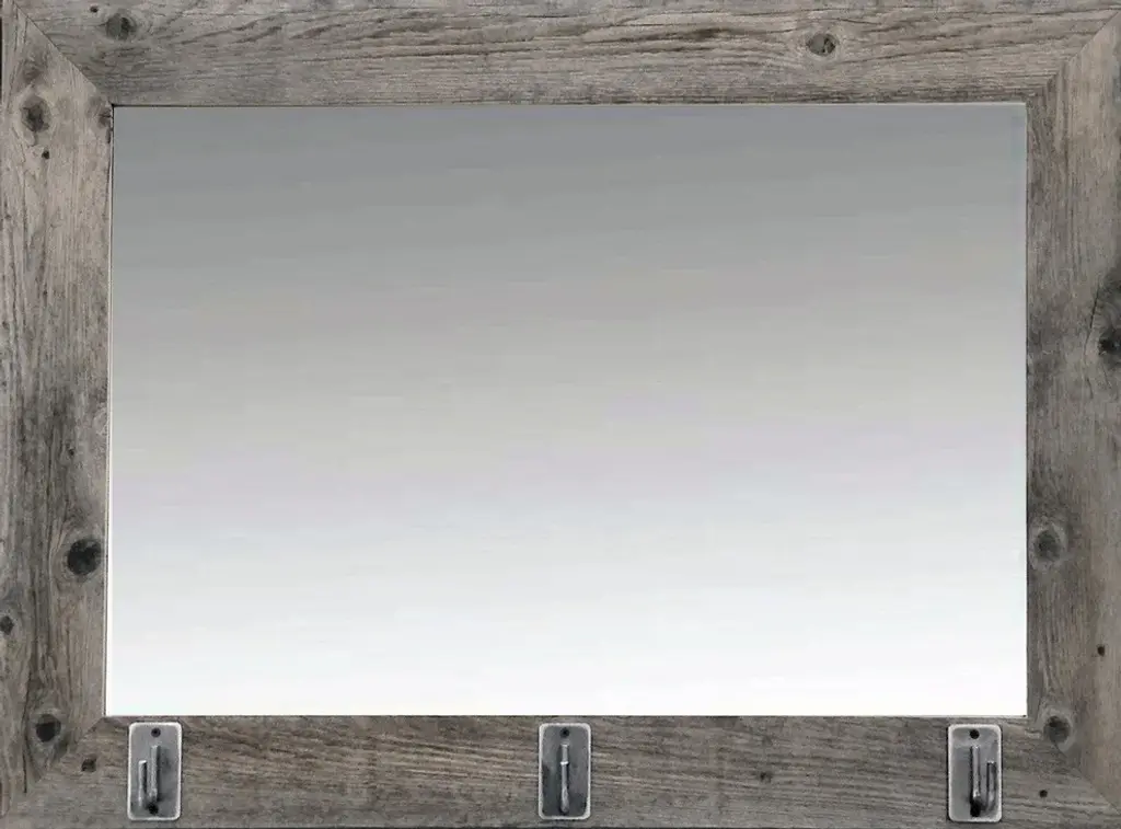 Rustic Mirrors - Reclaimed Barn Wood Mirror with Alder Inset and Nailhead Corner TacksWe''ve taken our popular Hobble Creek frame and turned it into a classic western mirror. We add a 1/2 inch walnut-stained alder inset to a 3 1/2 inch barnwood frame to help draw out the natural tones and textures of the naturally distressed wood. Nail head tacks are added in each corner to enhance the rustic and western charm of this mirror. While it is primarily viewed as a western decor mirror, its simplicity and classic styling make it a great addition to any room. Try it with nautical and farmhouse decor to elevate your interior decorating skills to the next level.D-ring hanging hardware is included with each mirror allowing you to decide whether to hang it horizontally or vertically.Mirror sizes are listed according to exterior dimensionsShips Via FedEx in 2 - 3 weeksHandcrafted in USAPLEASE NOTE: Because of the possible variances in computer monitor colors and reclaimed wood colors, your completed frame may vary slightly in color and texture from the one you see pictured here.