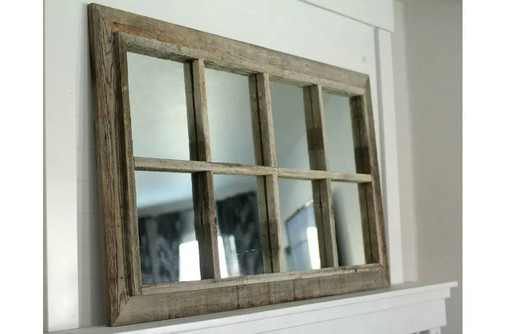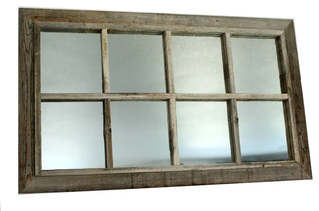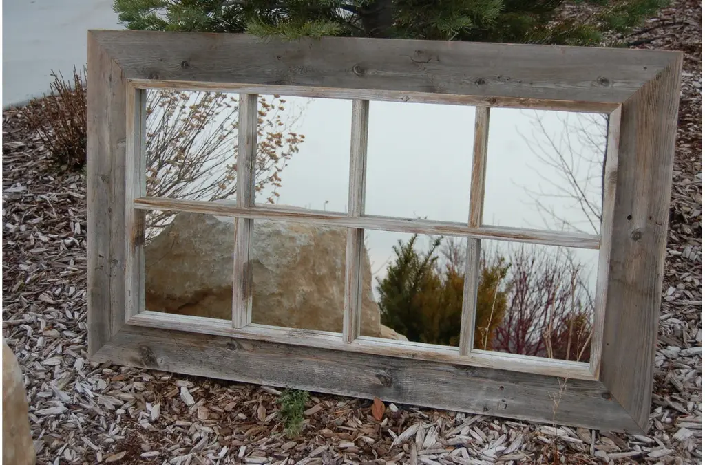Rustic Mirror, Window Pane Barnwood Mirror, 8 Panes, 30"x50"