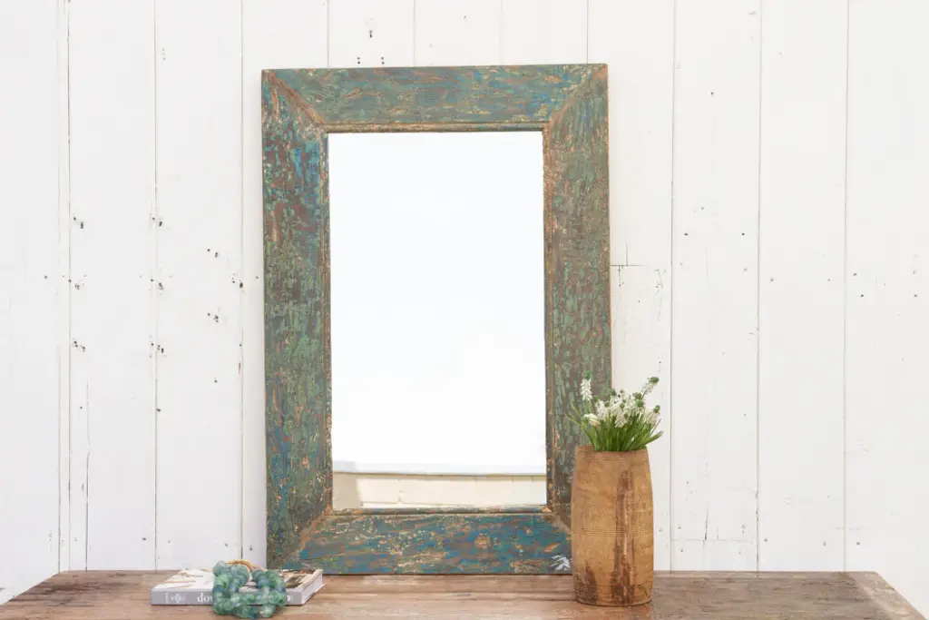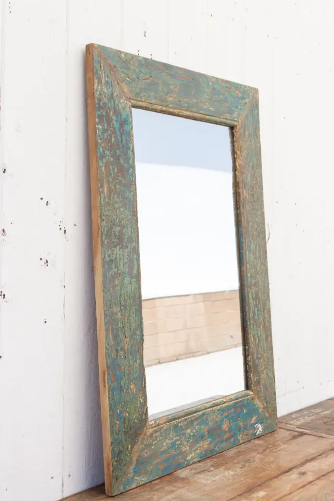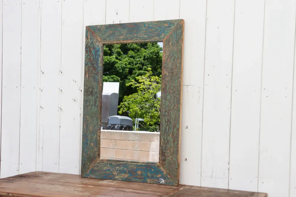 This rustic reclaimed mirror frame offers a perfect fusion of rustic charm and contemporary aesthetics. Crafted from reclaimed teak wood, each piece is imbued with a rich history and unique character. The natural variations in the wood grain mixed with the weathered patina, add depth and texture to the mirror frame, enhancing the overall visual appeal. This mirror would make for captivating focal point in any space.
