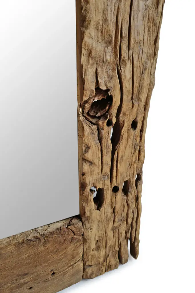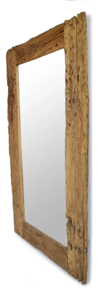 Beautiful salvaged old railroad tie wood repurposed into rustic full length mirror frames. Each is unique with texture, nail holes, and character markings. Wood border is 8"-9" wide. Great used vertical or horizontal.
