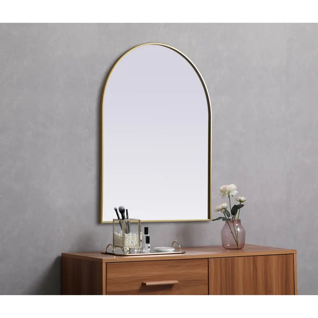 Transform your bedroom, bathroom, or entryway with this wall mirror, and re-imagine your morning rituals with effortless style. It has a metal frame and sleek arched silhouette, while the surface is crafted from beveled glass to bounce natural light around and open your space. Plus, it comes in a wide variety of sizes and finishes to choose from so you can carefully curate your space to your liking.