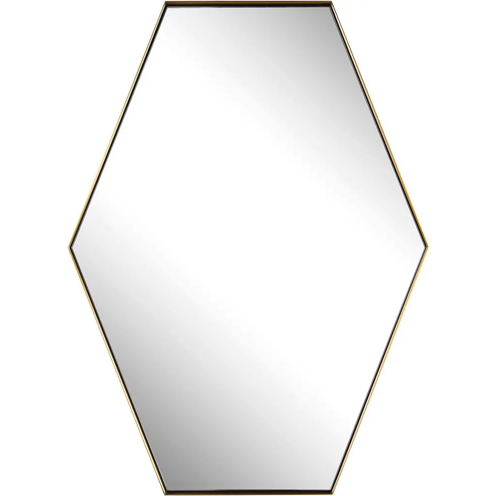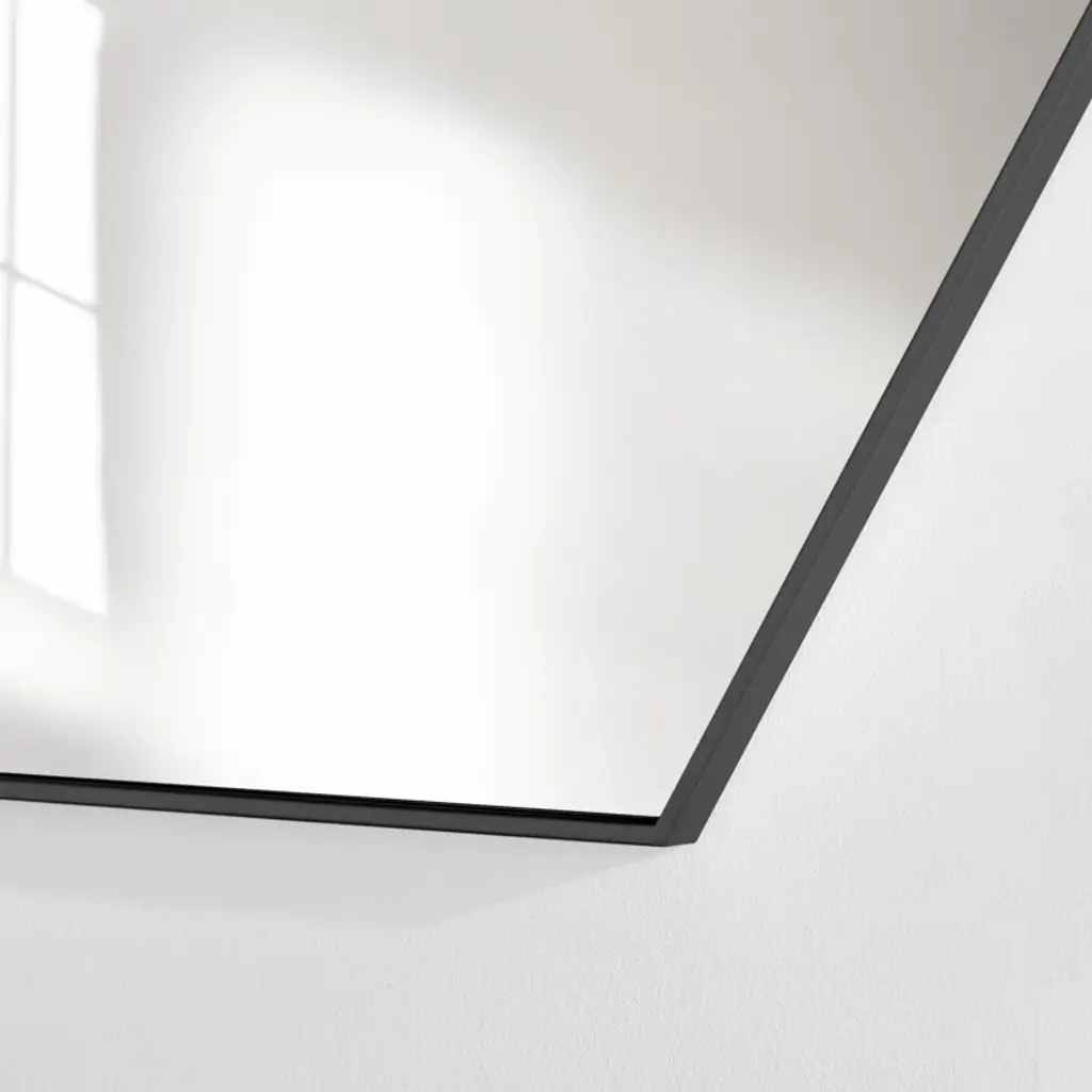 This accent mirror re-imagines your space. Its hexagonal silhouette brings a sleek, modern look to any room in your home. The slender frame is crafted from metal with an understated finish, and the glass surface bounces natural light around to open up your entryway or living area and complement various styles and color schemes. Metal inset hangers make it a cinch to mount, right when it arrives. Plus, this wall mirror is rated for damp locations, so it's safe to use in high-moisture environments.