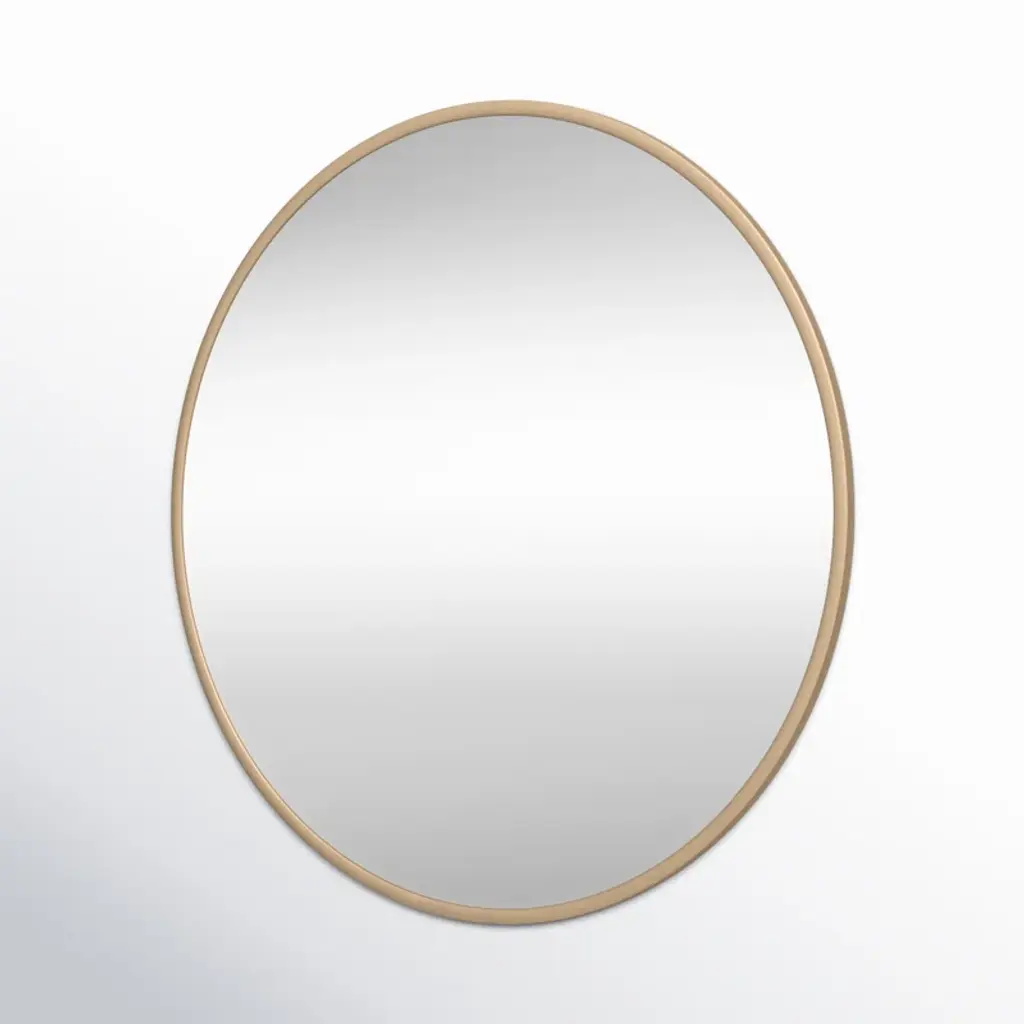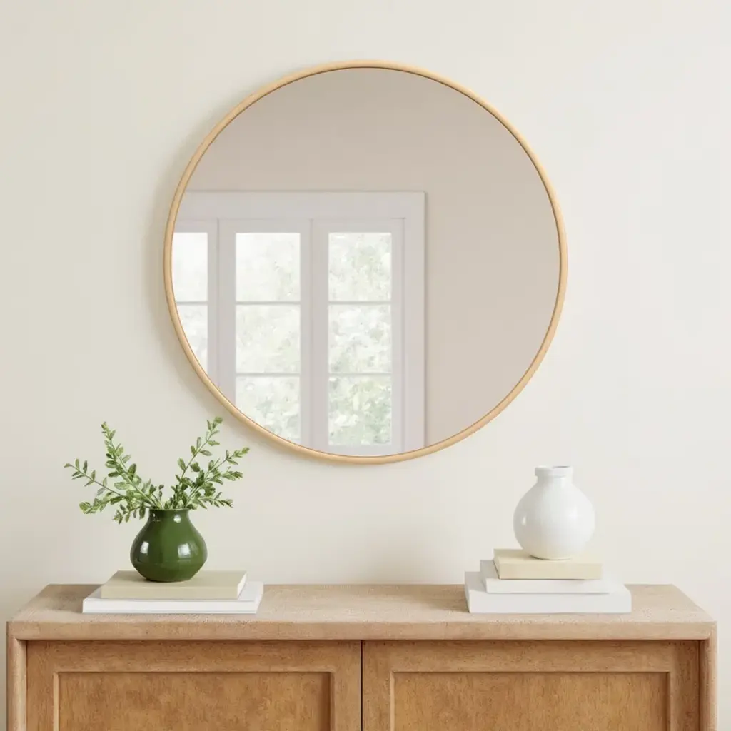 This accent mirror is as practical as it is decorative. It features an ultra-thin frame that encases a recessed, circular glass surface for an effortless look that complements most aesthetics. We think it looks nice in your entryway to welcome guests or in your bathroom as a spot to check your reflection as you get ready for the day. It's easy to hang thanks to a bracket on the back. And there are numerous sizes and finishes available.