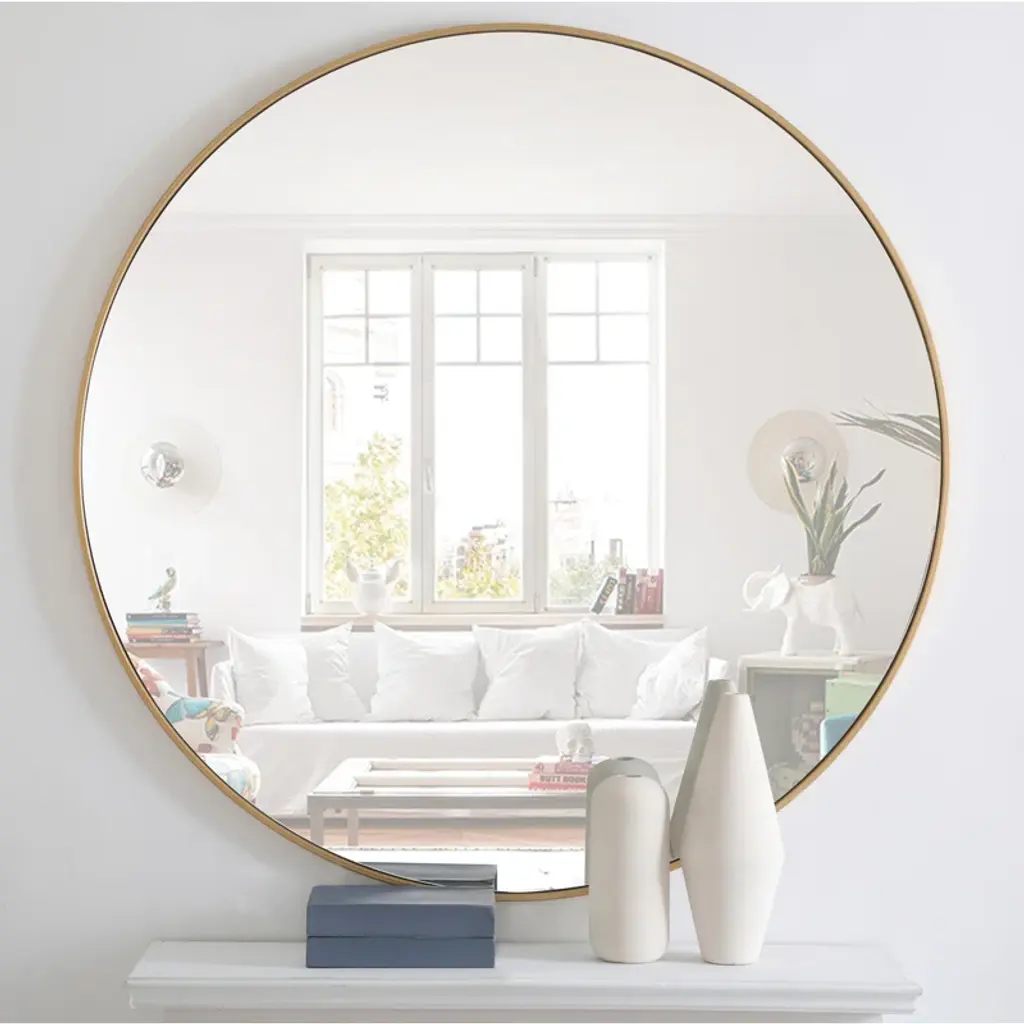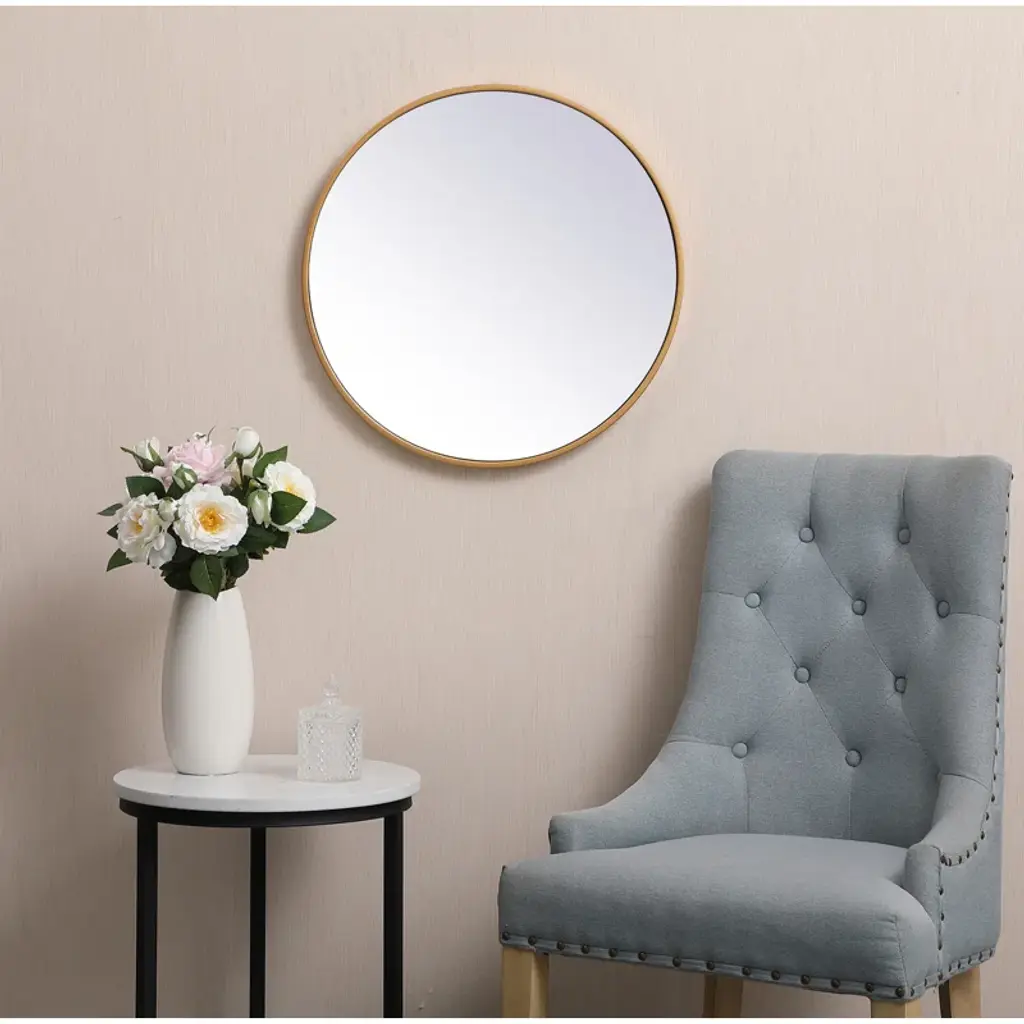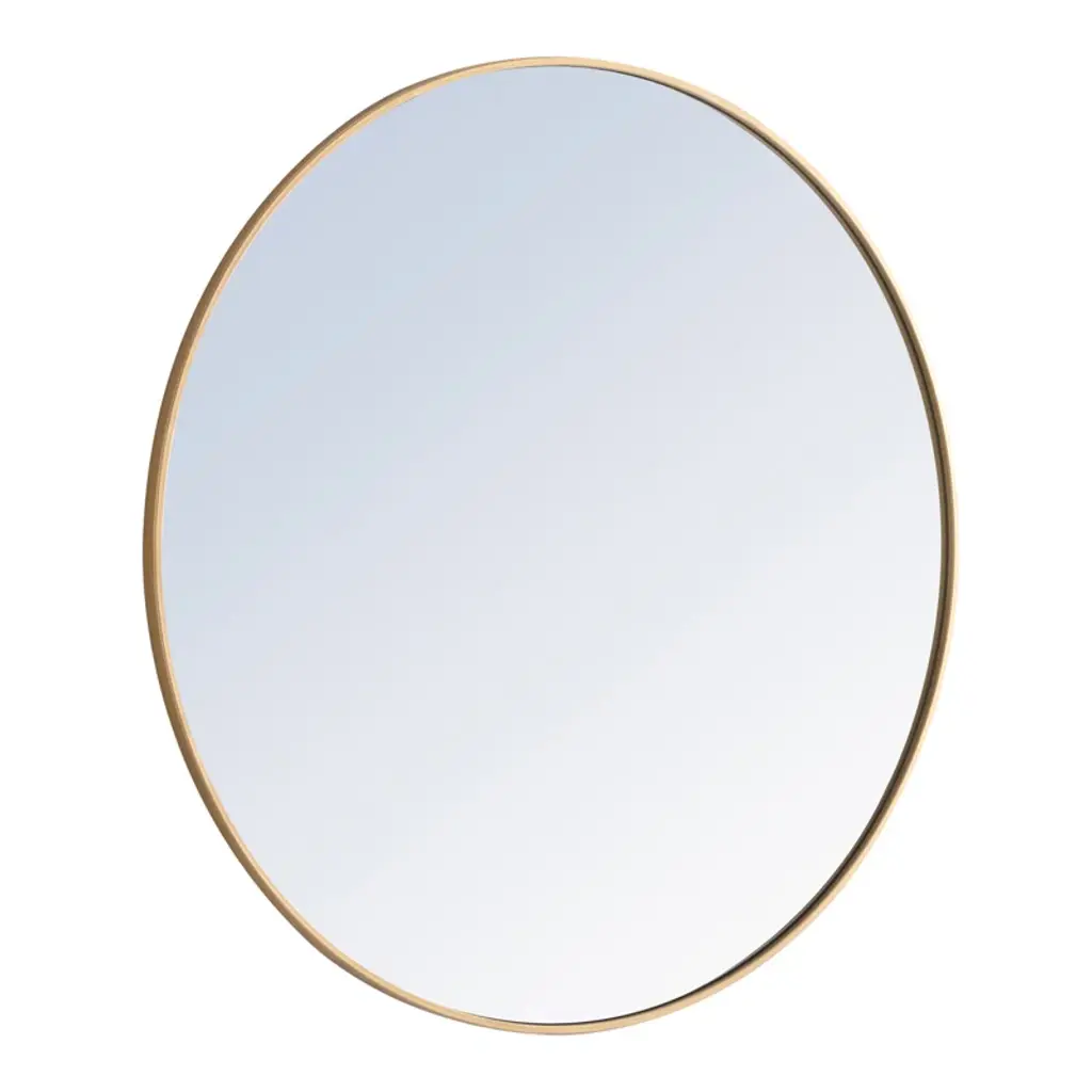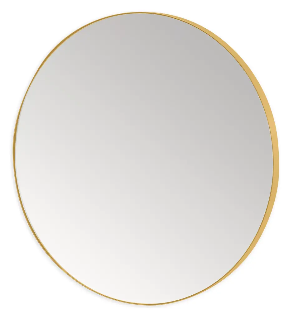This round accent mirror elevates your home décor with a mod look. We love the ultra-thin circular iron frame that encases a recessed glass surface, bouncing natural light around to brighten your space. It's a great addition to your entryway, a spot to check your reflection before heading out the door. Plus, there's a bracket on the back for easy hanging. Available in several sizes and finishes.