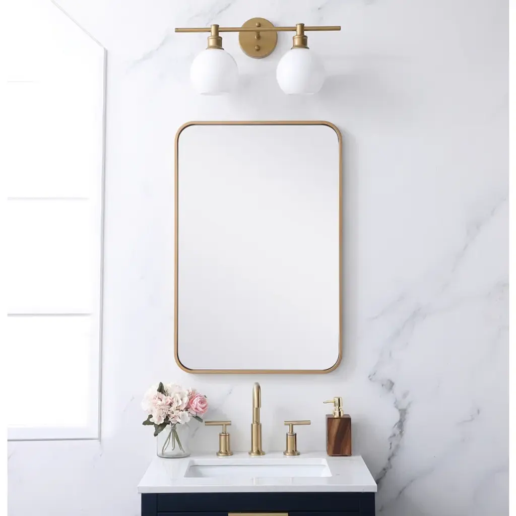 Our accent mirror elevates your home décor with a mod look we love. An ultra-thin mirror iron frame with rounded edges encases a flat glass surface that bounces natural light around to brighten your space. It's a great addition to your entryway, a spot to check your reflection before heading out the door. Plus, there's mounting hardware on the back for easy hanging. Available in several sizes and finishes. Damp-rated.