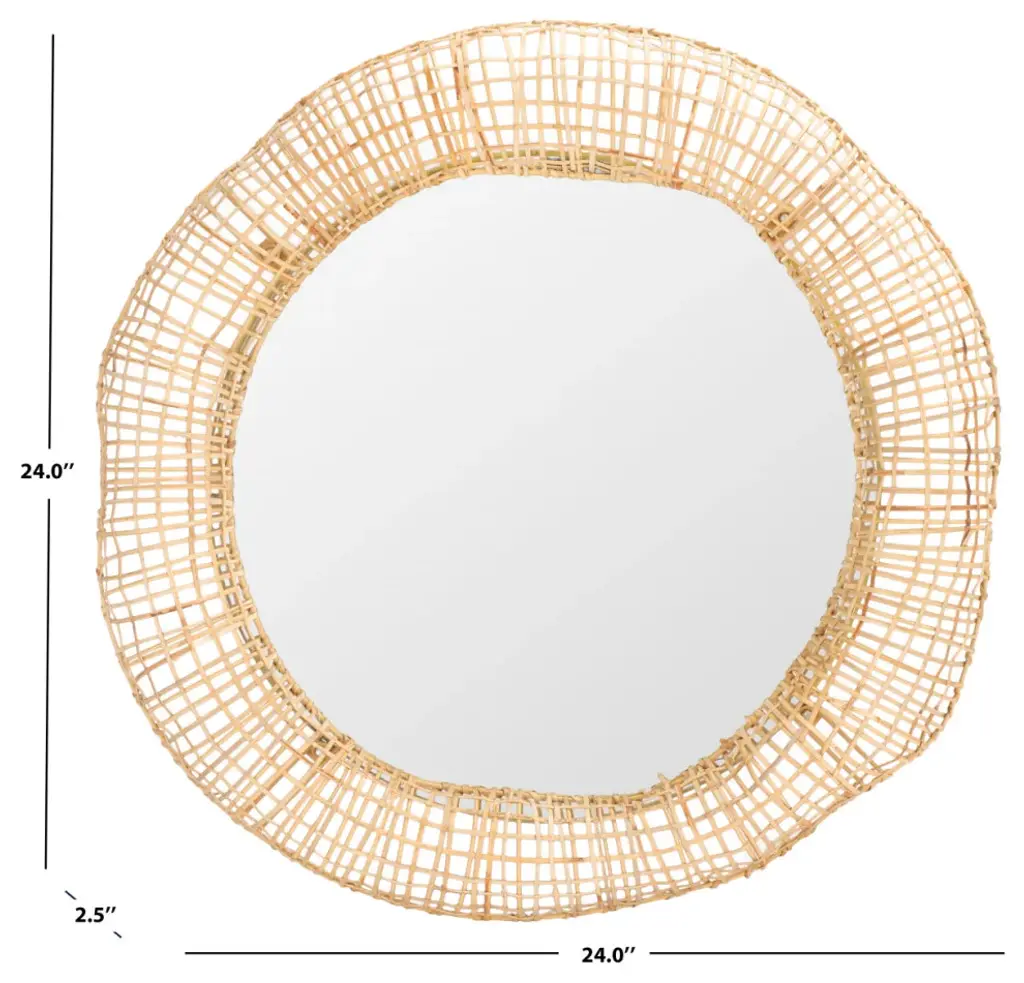 Elevate your space with the Alia 24"Mirror, a harmonious blend of natural aesthetics and artisanal elegance. Crafted from MDF with a cane border, this mirror offers a sophisticated touch with its intricately woven frame, demonstrating skilled craftsmanship. Its airy and organic border infuses a sense of lightness into any room, while the neutral hue ensures a seamless fit with various decor palettes. Enhance your home with this artful piece that reflects both your style and the beauty of your space.
