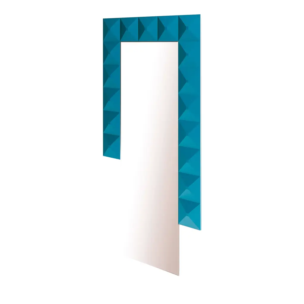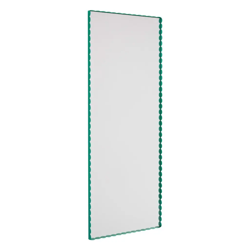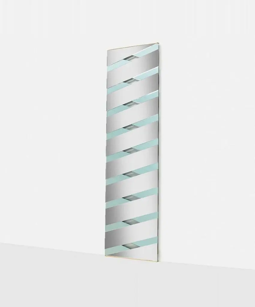 Sage green twill mirror by Mason EditionsDimensions: 45 × 3 × 171 cmMaterials: GlassColours: pink, sage green, smoke greyA clear reference to the weaving motif: the rectangular Twill mirror is a tribute to the exclusive world of men’s tailoring. The design of the glass reinterprets the iconic diagonal weave, created by weaving the threads to form a 45° oriented structure, originally used to give unprecedented shine to plain-coloured fabrics.A full length mirror that can be hung on or leant against a wall. These iconic interlocking sections of glass are available in three subtle coloured variations: smoke grey, sage green and pink.A truly luxurious statement piece for any modern space.Mason Editions comes from the experience of an Italian lighting company placed in the Veneto region.This new brand of furniture elements was born from the meeting between the entrepreneur Fabio Mason and three international designers who designed the first collection for a sophisticated public. Therefore the collection wants to be eclectic and timeless.The material contrast and fresh design, with essential shapes, mark the mason editions collection.In conclusion, the elegant Italian sign highlights proposals suitable for all environments.Mason editions is a set of experiences, artisans, and productive know-how that creates a capable system.