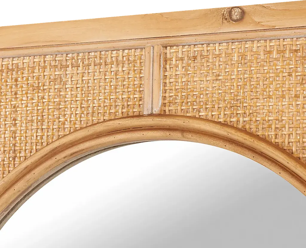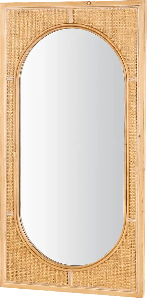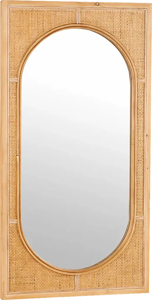 Infuse your space with free-spirited charm and bohemian flair. The Sagro rectangular wall mirror blends vibrant design elementslike natural textures, earthy tones, and whimsical accentsto reflect your unique style. Crafted from a mix of rattan, MDF, and glass, it features a matte brown rattan finish for an effortlessly organic look. The woven-inspired frame adds depth and character, making it a standout piece in any room. This boho-chic mirror is perfect for adding warmth, texture, and personality to your wall decor. Customer assembly is required.