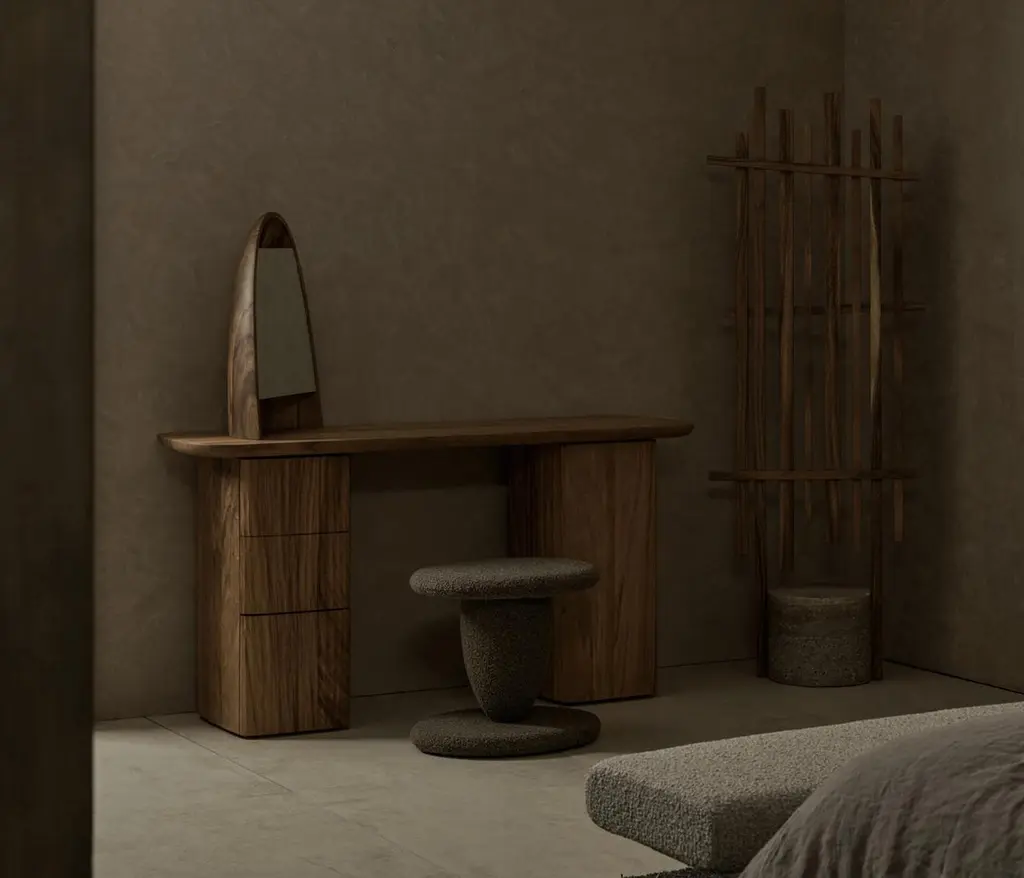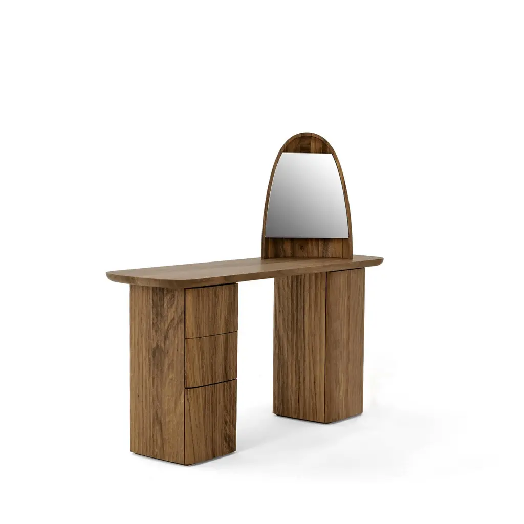 Sahara Dressing Mirror by DAaZDimensions: D 15.5 x W 43 x H 58.5 cm.Materials: Albizzia wood, mirror.DAaZ Furniture honors the spirit of adventure. We embrace the escape of the ordinary and revel in the magic that’s found in the unexpected. Our artistic ability shines through in our choice of contrasting designs that challenge conventions, tailor trends, and bring out the creative flair in our customers too. Faced with a treasure trove of choices, you are inspired to walk individual paths leading to the unknown, unveiling new sights, enveloping you in the scent of nostalgia.We bring to your home more than just beautiful design, but unique fragments of life stories. After all, what is your home but a blank canvas on which to celebrate your own journey with the people you love.