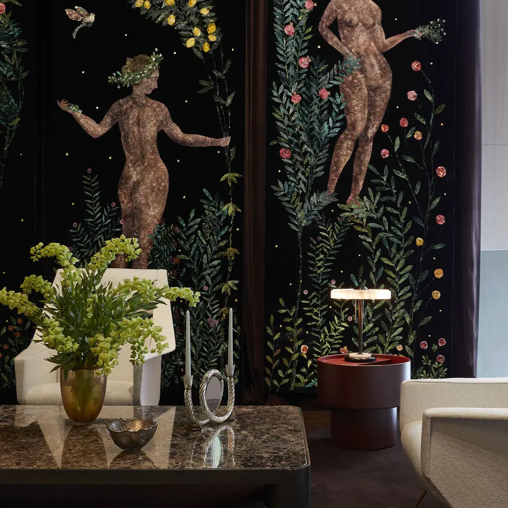 The Illumination Collection by Aina Kari and Giovanni Botticelli captures the harmonious interplay of light, reflection, and exceptional craftsmanship. Inspired by ancient rituals of lighting a candle and gazing into water, this collection brings those timeless gestures into a modern context. Featuring Murano glass and Botticelli's bronzed double mirrors, it captures and refracts light in a contemporary style, creating a striking contrast between the smooth mirror surface and the warm, textured glass. The two candles included are white.