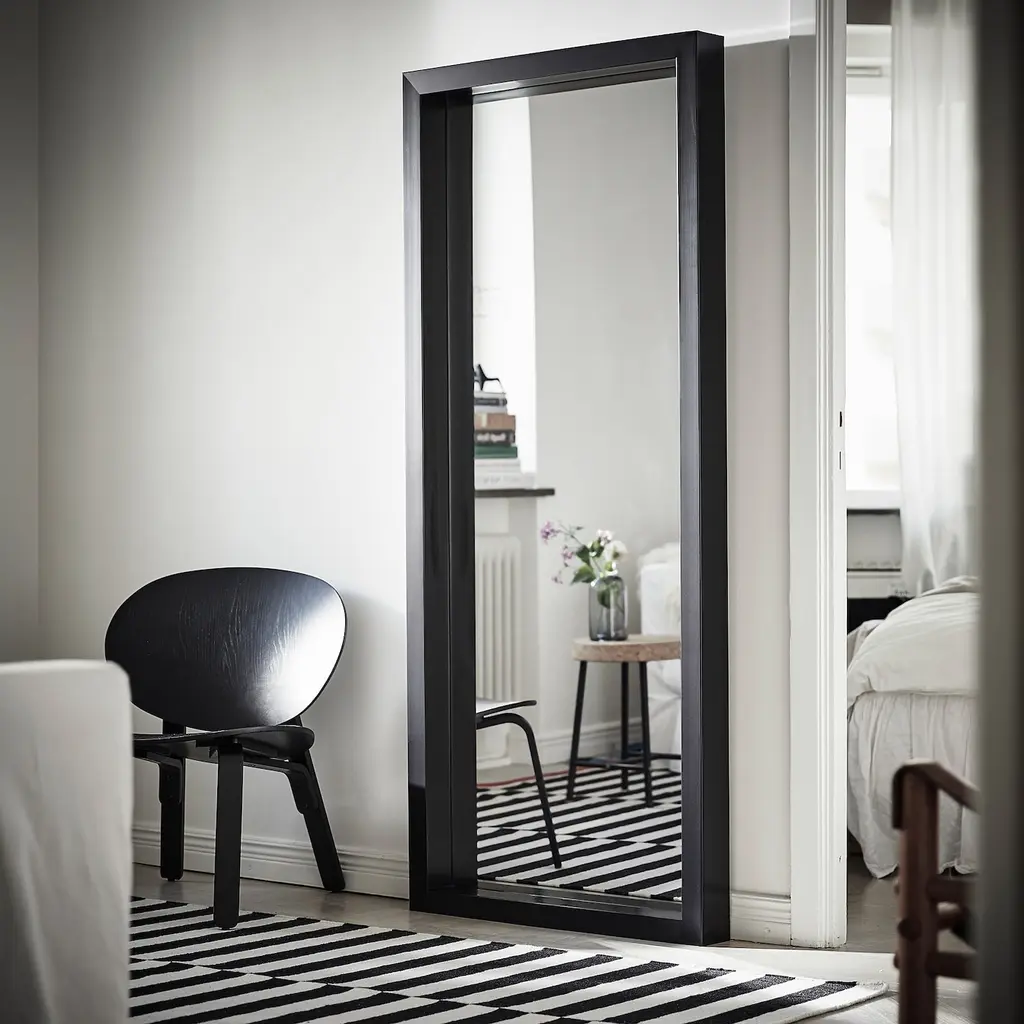 SANDTORG Mirror - black 29 1/2x70 7/8 ". Full-length mirror. SANDTORG mirror can hang either on a wall or be placed on the floor anchored and tilted against a wall. Can be hung horizontally or vertically. Provided with safety film - reduces damage if glass is broken.