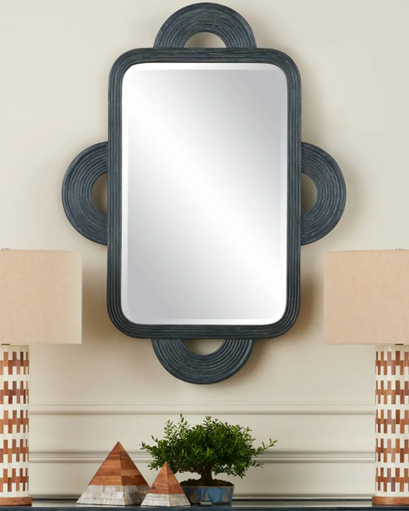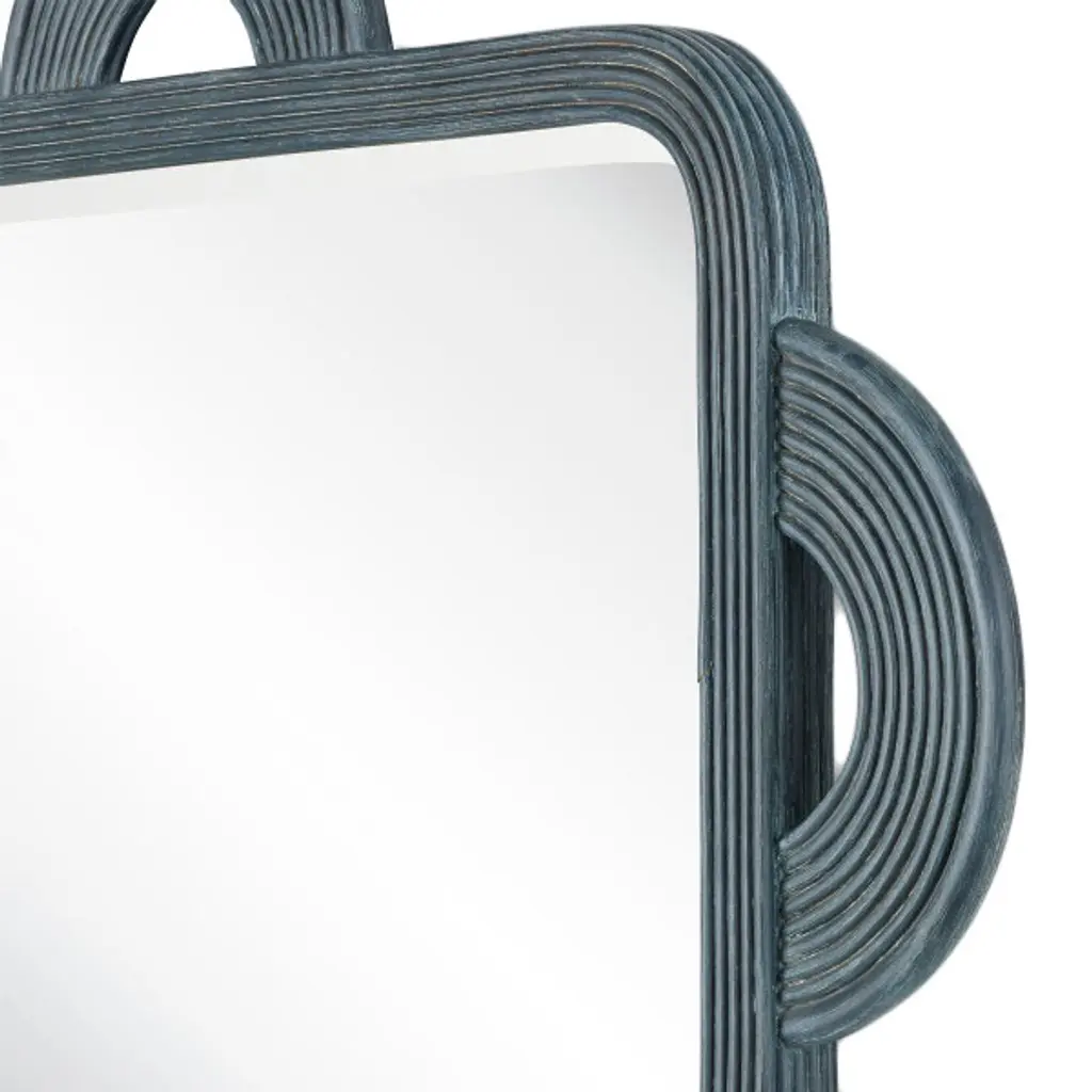 The Santos Rectangular Mirror is handmade of rattan, the rounded shapes extremely difficult to achieve with such a strong material. The finish covers the entire frame, bringing a subtle patina to the decorative mirror, another design detail worth noting. The beveled edges on the mirror are also done by hand, and there are two cleats on the back so that it can be hung vertically or horizontally.