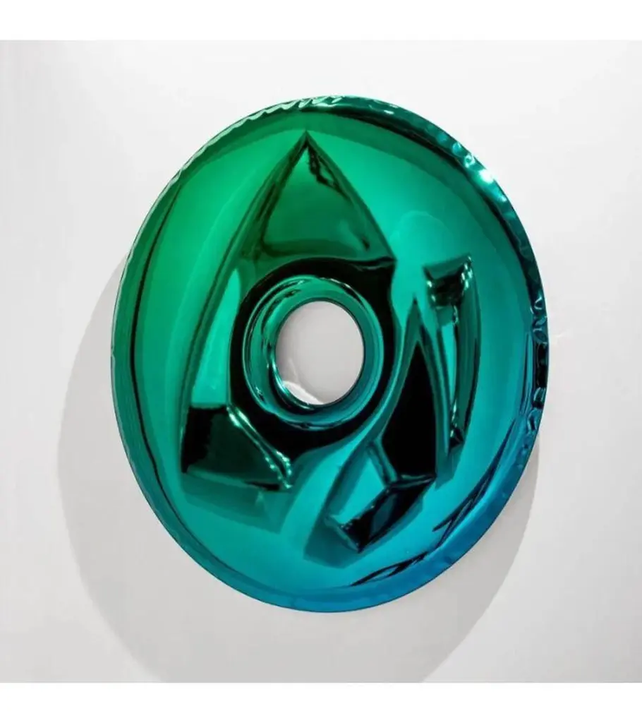 Sapphire Emerald Rondo 95 wall mirror by ZietaDimensions: Diameter 95 x Depth 6 cm Material: Stainless steel.Finish: Sapphire emerald gradient.Available finishes: Stainless steel, white matt, sapphire/emerald, sapphire, emerald, deep space blue, dark matter, or red rubin. Also available in sizes ø75, ø120, and ø150cm. The Rondo mirror is made of stainless steel polished to a high gloss. Its polished surface is perfectly reflecting the light and other objects placed in the same room or hall. Largescale convexities that appear on the surface of the mirror are literally able to alter the space. It is like making an individualized interior design of the moment when by rolling the mirror from one place to another everybody can create or rediscover a well-known environment to a brand new and grasping concept. Depending on Rondo´s arrangement, either by hanging it or leaning at the wall, the mirror can change the perception of the surroundings.Deep, dark, blue, and intriguing. The new unique finish of Rondo Deep Space Blue takes the spectators for an unexpected journey into an undiscovered world of reflections. The mirror resembles cosmic wonders and at the same time can be fitted with the most demanding and elegant interiors. Color gives meaning and brings associations. The Gradient collection presents the whole spectrum of shades of cool sea depth. Carefully selected colors blend well with the hard steel.About Zieta: Zietas main goal is to deliver uniqueness and customization in design and construction while keeping the production, transport, and warehousing innovatively efficient.This is how they imagine the future world: Light, durable structures of customized applications produced on demand out of one-of-a-kind parts, yet efficiently.They use a computer-controlled production process. Customized pattern, customized form, customized function, one-of-a-kind product, and outstanding precision are what they deliver.You will find all of this philosophy reflected in the products. They research, they discover new possibilities, they play with forms and they deliver a beautiful, innovative, surprising outcome to people who love the design and who care about design development.They believe their work is a valuable contribution to the world of design not only by the unique beauty of the forms but most of all by opening ultra-innovative opportunities of forming and new paths for the world of the future.