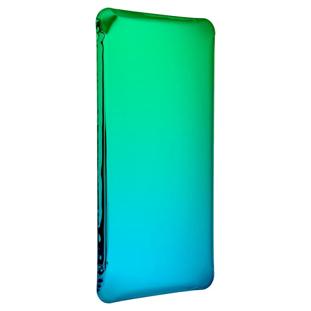 Sapphire Emerald Tafla Q1 sculptural wall mirror by ZietaDimensions: D 6 x W 60 x H 180 cm Material: Stainless steel. Finish: Saphire/Emerald.Available in finishes: Stainless Steel, Deep Space Blue, Emerald, Saphire, Saphire/Emerald, Dark Matter, and Red Rubin. Also available in different sizes. Minimalist TAFLA Q gains a new character with two colours of lacquer that cover its inox steel surface. Mysterious and bloody elegant, the Red Rubin and Dark Matter mirrors create unique effects on the wall. With several layers of colour, they are far from obvious: they hypnotize with the depth of reflection.The rectangular shape of the TAFLA Q makes it a classic choice for lovers of simplicity. The addition of colours makes it even more interesting and original.TAFLA Q is available in two sizes – Q1 and Q2. It comes in the inox finish, as well as in four colours from The Gradient Collection.About Zieta: Zietas main goal is to deliver uniqueness and customization in design and construction while keeping the production, transport, and warehousing innovatively efficient.This is how they imagine the future world: Light, durable structures of customized applications produced on demand out of one-of-a-kind parts, yet efficiently.They use a computer-controlled production process. Customized pattern, customized form, customized function, one-of-a-kind product, and outstanding precision are what they deliver.You will find all of this philosophy reflected in the products. The research, they discover new possibilities, they play with forms and they deliver a beautiful, innovative, surprising outcome to people who love the design and who care about design development.They believe their work is a valuable contribution to the world of design not only by the unique beauty of the forms but most of all by opening ultra-innovative opportunities of forming and new paths for the world of the future.