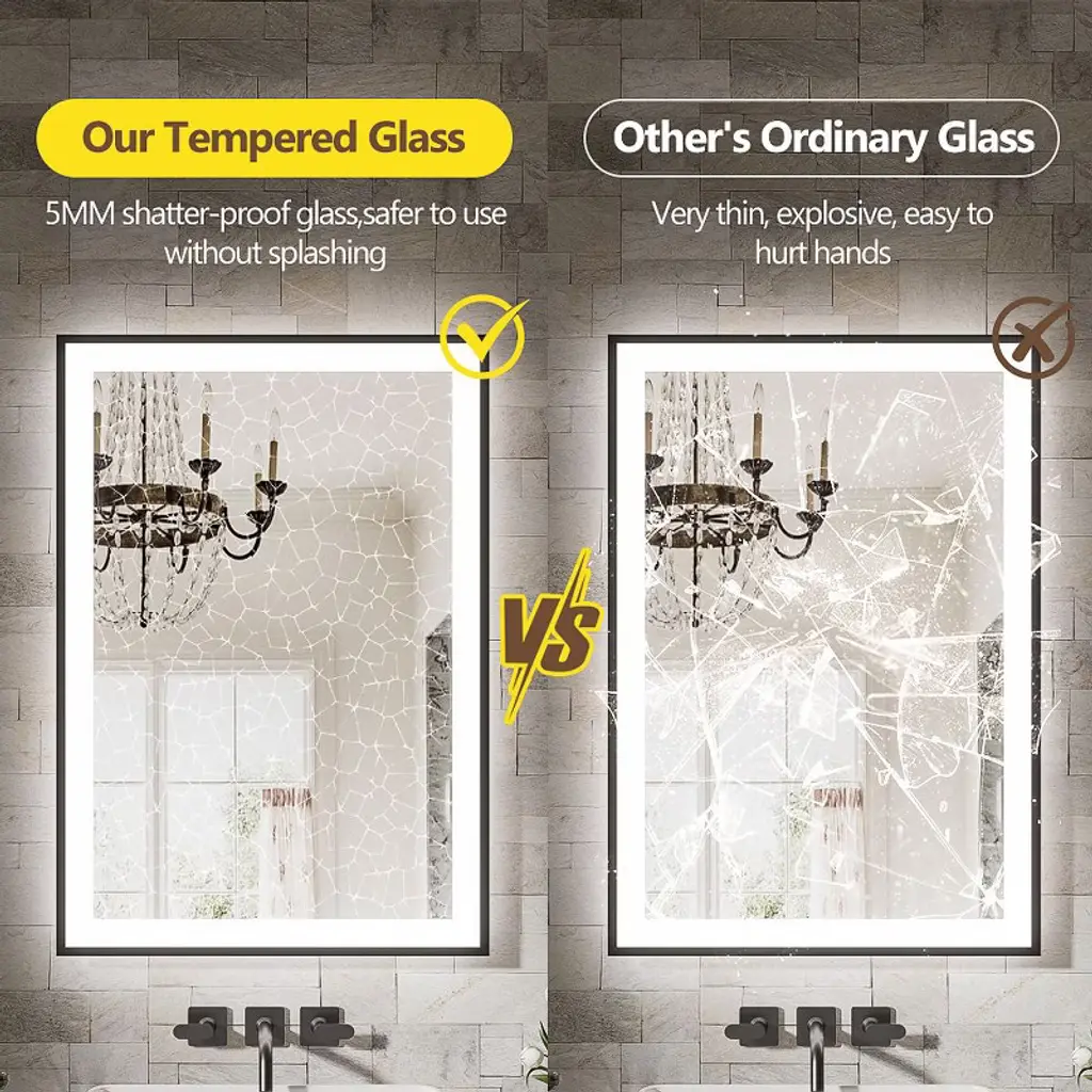This mirror has a built-in anti-fog function, no need for frequent defogging spray, and the anti-fog mode automatically turns off after 1 hour, being practical and safe. It has certified components with a protective casing, a copper-free silver mirror with corrosion resistance, 5mm tempered glass that is shatterproof and explosion-resistant, and key parts with a long service life. The optimized packaging reduces transportation damage, passes multiple rigorous tests, and comes with installation screws for easy installation. It balances practicality and safety in daily use, transportation and installation, and is very suitable for daily household needs.