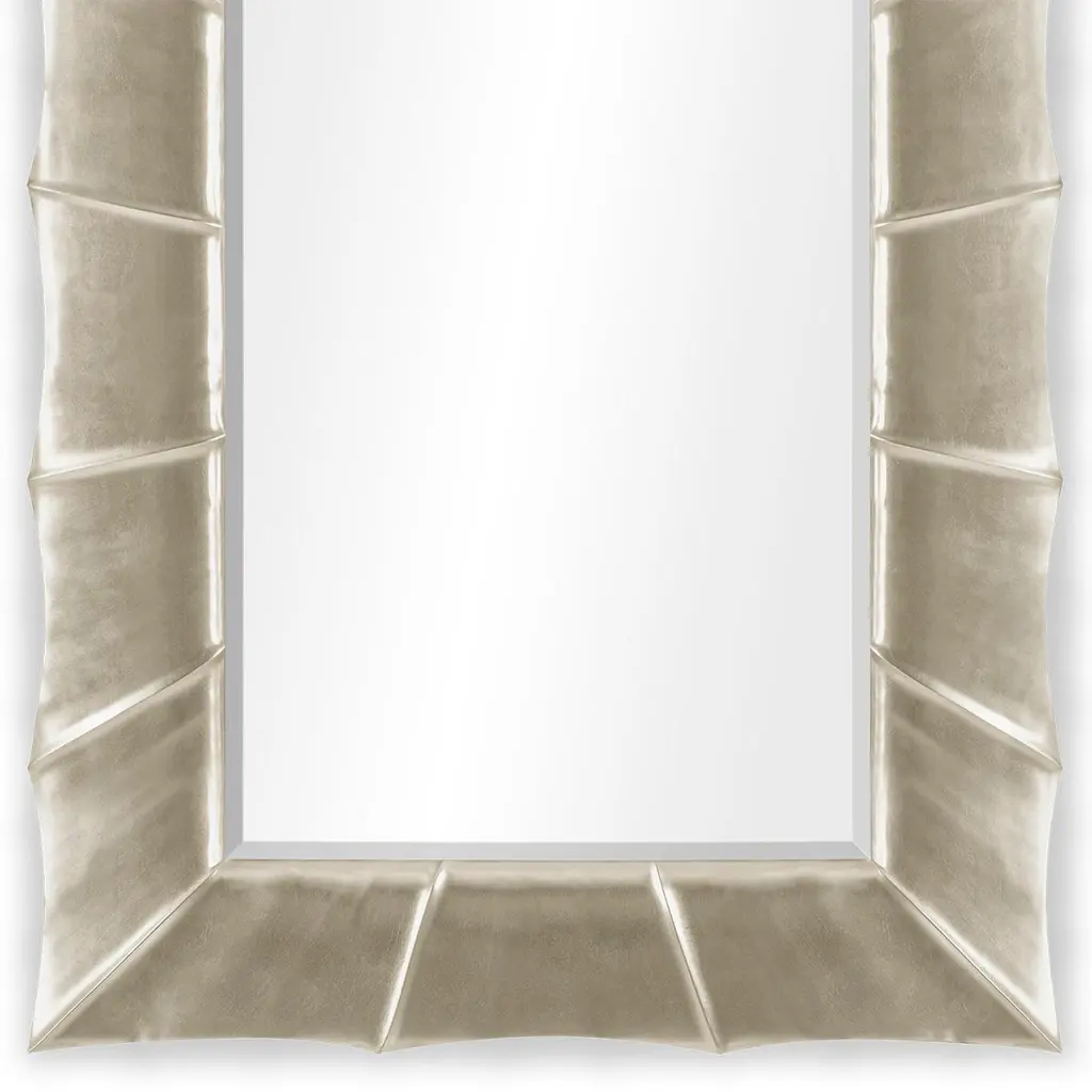 Mirror Scales Silver with hand-carved solid wood frame,hand-painted with silver leaf. With beveled mirror glass.Also available in gold leaf, on request.Available in:L77 x D4 x H108cm, price: 4900,00€L94 x D5 x H130cm, price: 6200,00€L110 x D6 x H152cm, price: 7400,00€.
