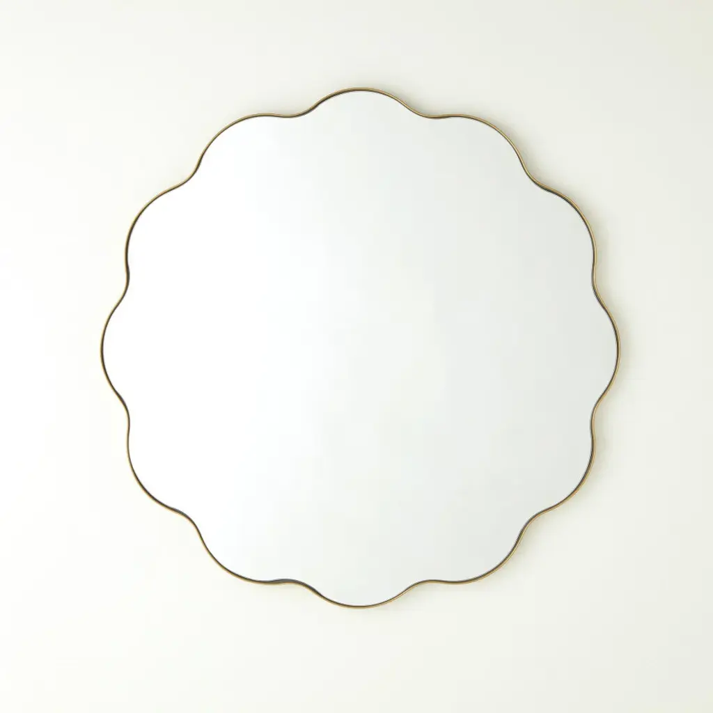 The magical shape of this round mirror is highlighted with a gold metal frame. This mirror is a chameleon because it can complement any interior design style. Imagine it over a sink or featured in a place of importance, this mirror will not disappoint!