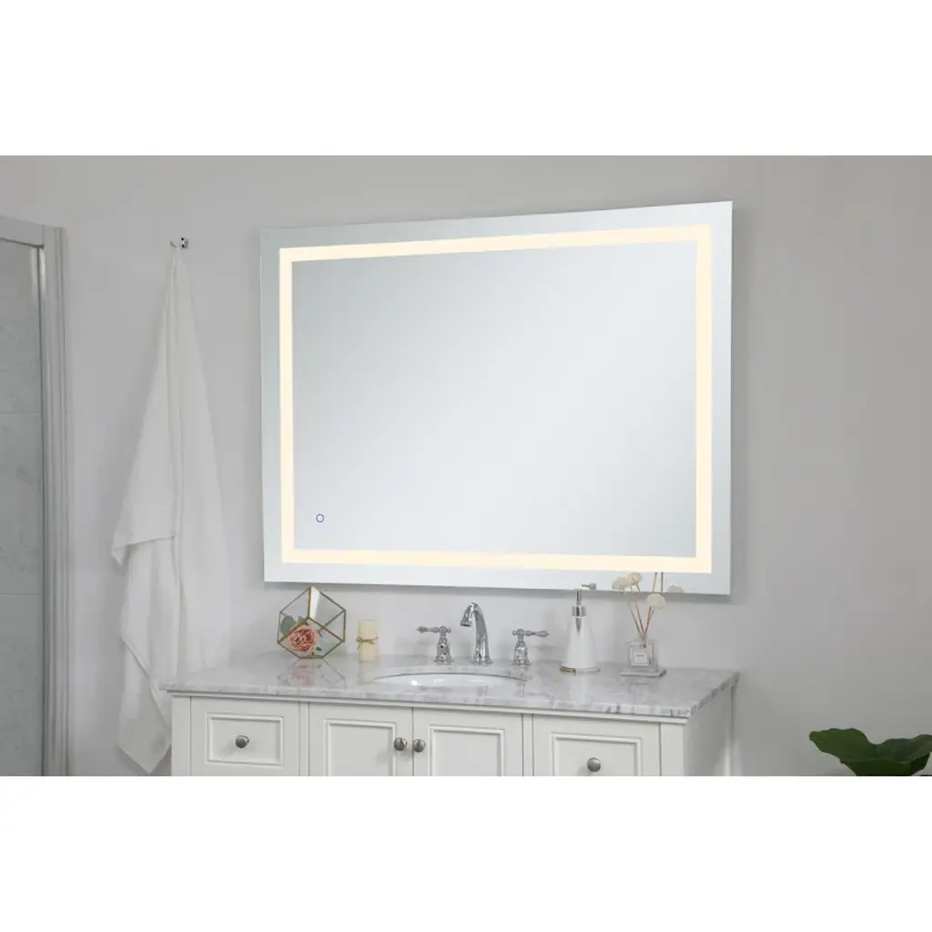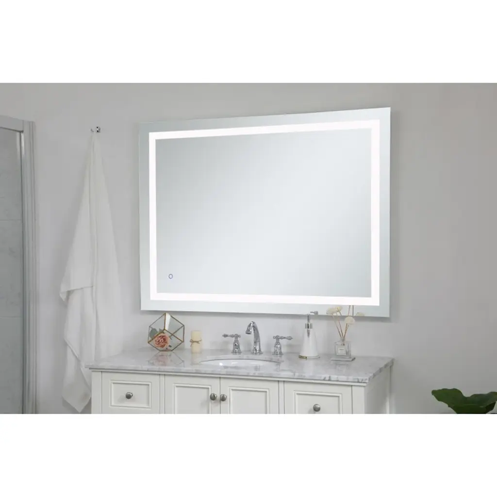 Reflect in style. This wall-mounted mirror is perfect for your bathroom or vanity area. With its sleek and flat design, it adds a modern touch to any space. The glass mirror is complemented by built-in lighting, providing you with the perfect illumination. Plug-in and enjoy the convenience of a well-lit reflection.