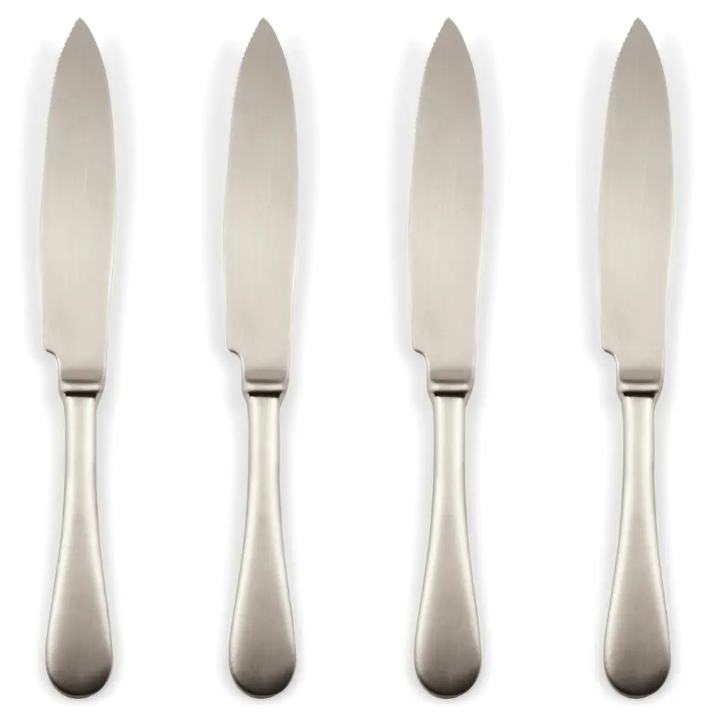 Appealing contours, subtly "scooped" handles and a sparkling mirror finish distinguish the serrated stainless steak knives joining our popular Scoop flatware family.