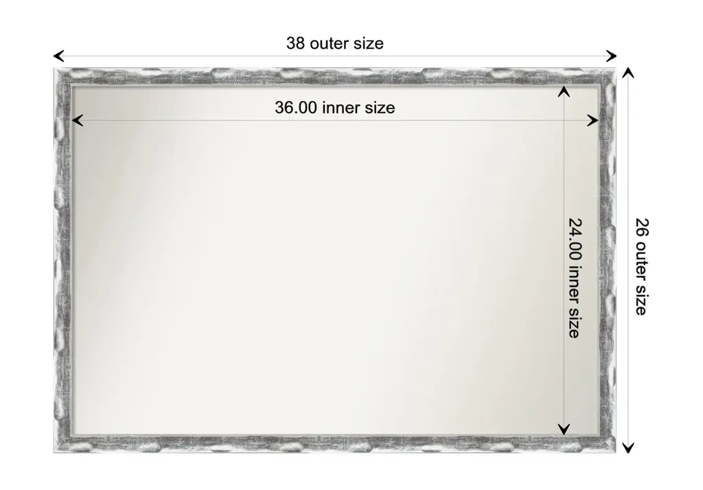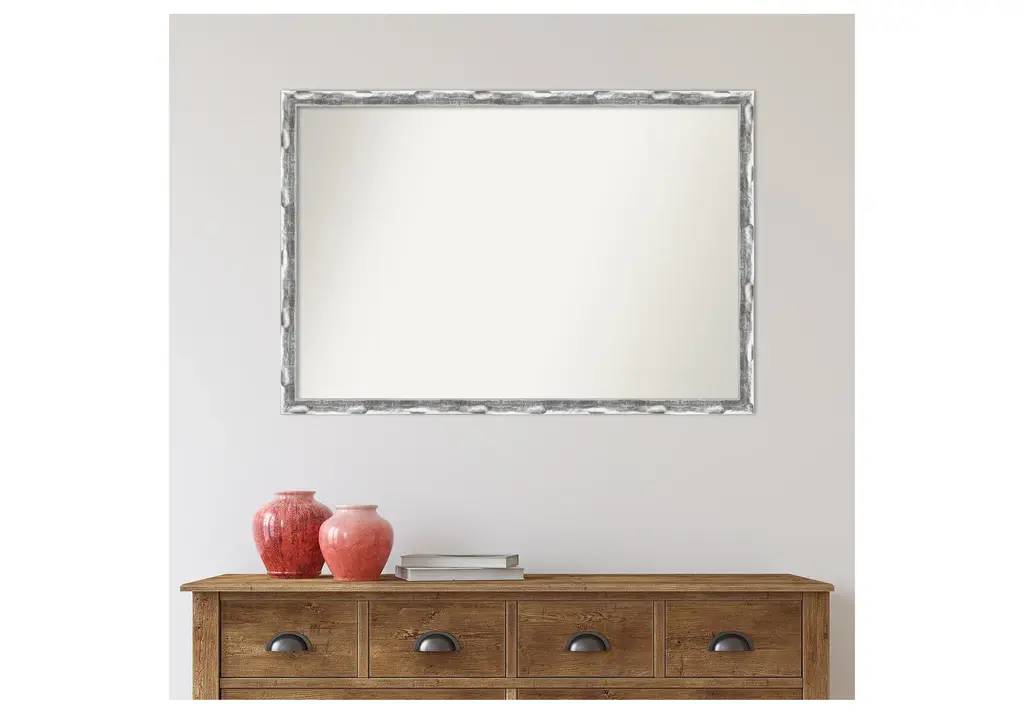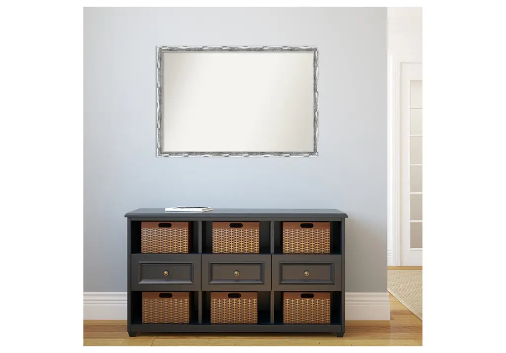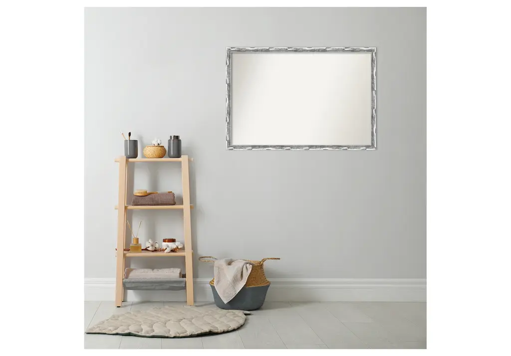 Give your bathroom the finishing touch with this Non-Beveled Wall Mirror framed with the Scratched Wave Chrome frame. Individually made using traditional custom framing techniques, it has the quality you would expect from your local frame shop. It holds its value with premium finishing that can be appreciated up close.Features:MIRROR DETAILS: This mirror features premium glass for a clear, undistorted image and has a non-beveled surface to maximize the viewing area.FRAME DETAILS: The Scratched Wave Chrome Frame is a contemporary frame with a shiny, chrome-like finish featuring delicate scratch lines and sculpting that resembles a wave. The frame is 1.25 in. wide and stands 0.75 in. off the wall.PROTECTIVE BACKING: This wall mirror is finished with a solid surface backing to ensure stability and prevent moisture and dust buildup.HASSLE-FREE HANGING: All mirrors have durable hanging hardware attached to the back to hang vertically or horizontally, along with hanging hooks and nails.ASSEMBLED IN THE USA: Each piece is assembled to order in Madison, WI USA.FOR HOME OR COMMERCIAL USE: Because of our attention to detail and focus on artistry, architects, interior designers, and homeowners alike choose this mirror to create beautiful living spaces.