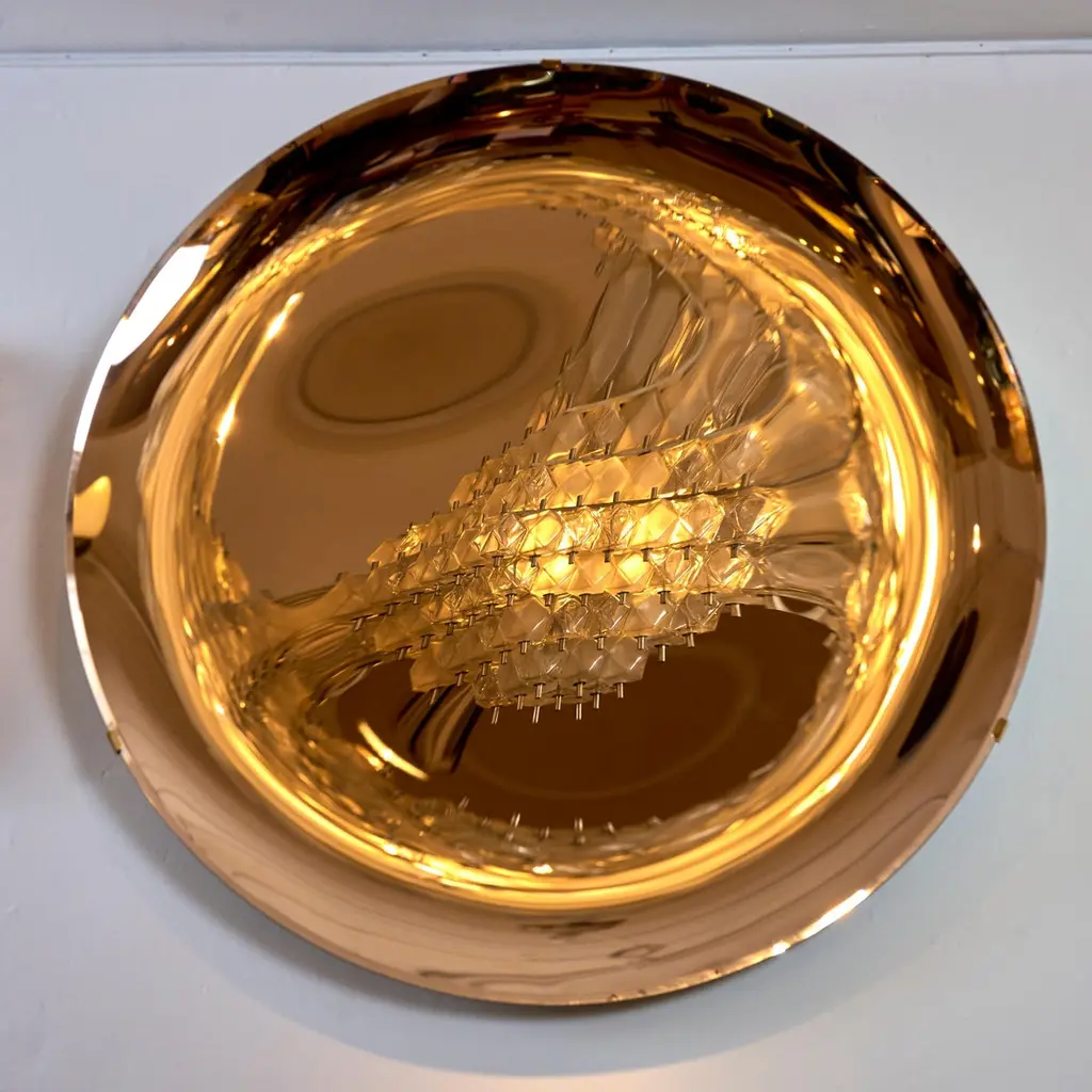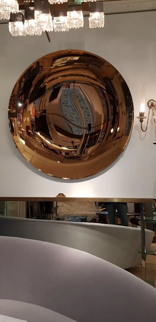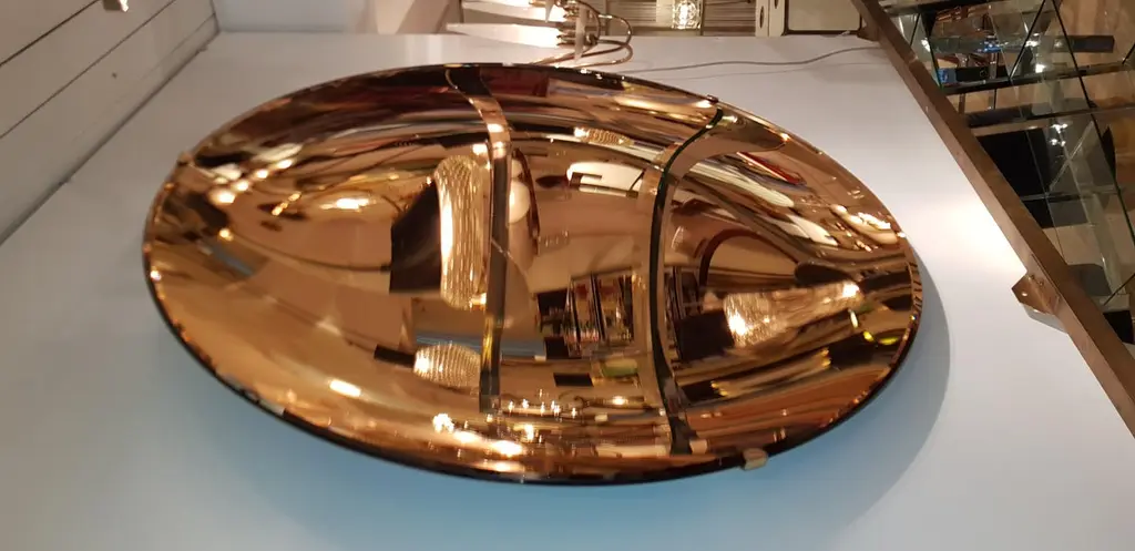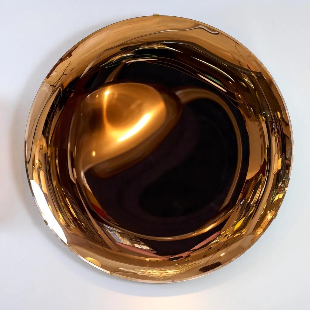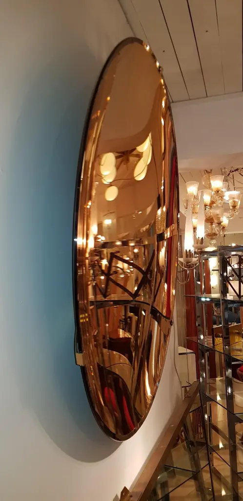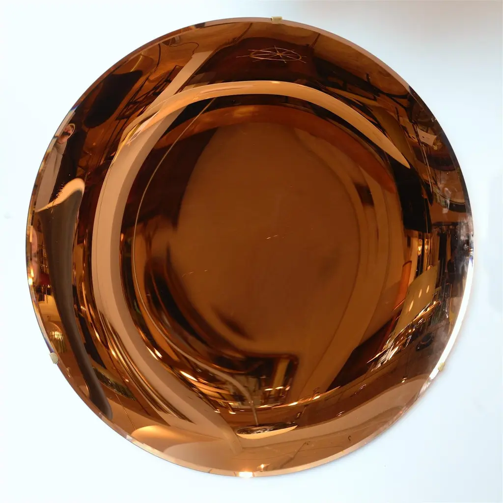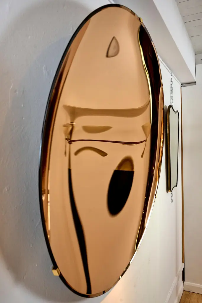 Impressive pink gold concave mirror with brass wall bracket other colors are available.Bronze, blue, green, copper Some colours available immediately. Please ask if you have another colour in mind.