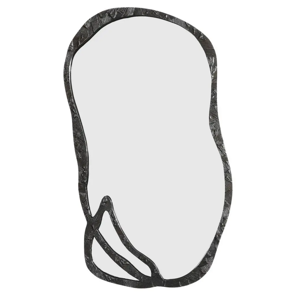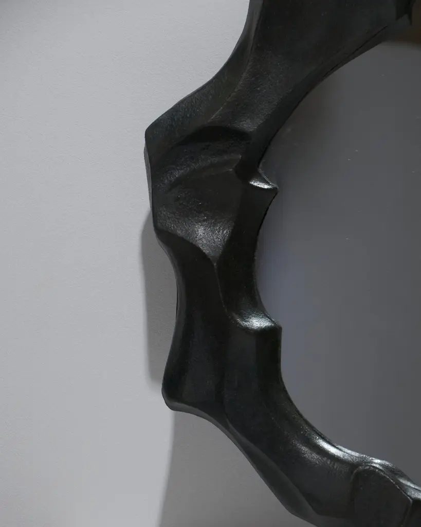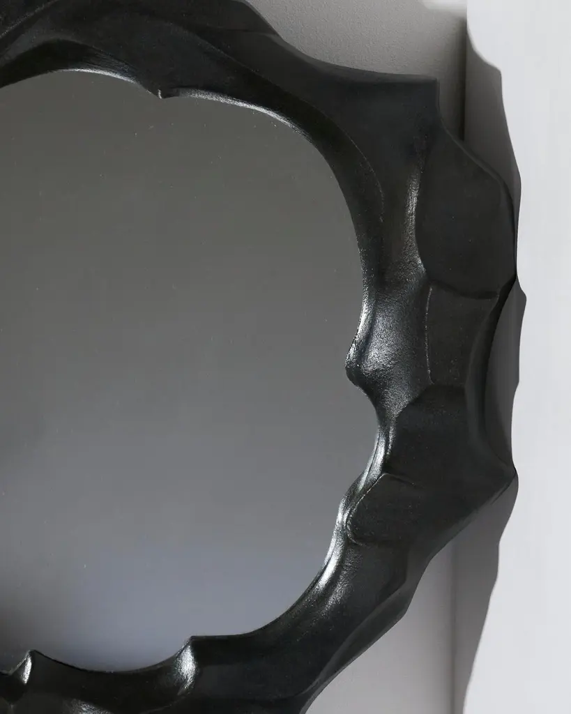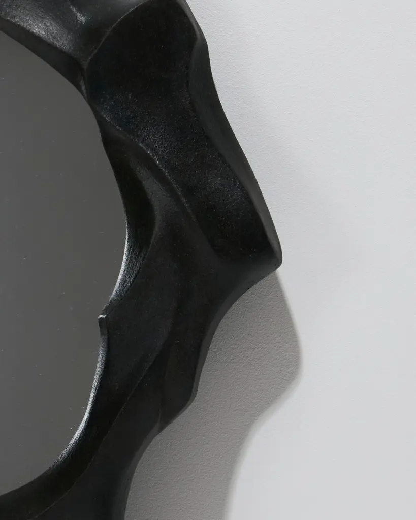 Sculptural mirror in stoneware and oxides, handcrafted by artist Camille Le Dressay. A unique piece, signed on the edge. This mirror stands out with its irregularly molded stoneware frame, evoking the fluidity of waves or dunes. Each curve of the frame is carefully shaped to create an organic and sculptural visual effect, capturing the essence of natural movement. This mirror combines contemporary aesthetics with mineral inspiration, bringing both authenticity and uniqueness to any interior. Perfect for enhancing modern spaces, it embodies both the raw beauty and the finesse of artisanal design.