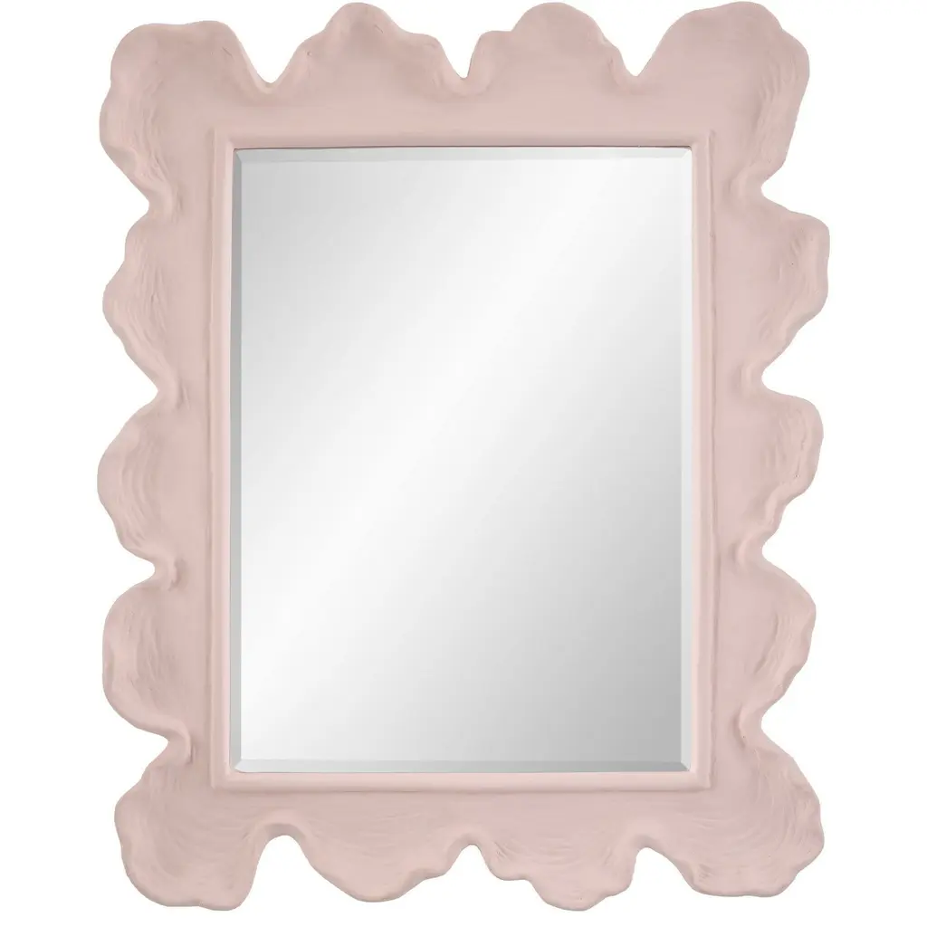 The Sea Coral Mirror from Uttermost, imagined by Grace Feyock, brings oceanic inspiration to interior spaces. The organic frame captures the fluid movement of coral formations in each ripple and wave of its textured surface. The matte finish emphasizes these natural patterns while maintaining a fresh, clean appearance. A precise beveling technique enhances the mirror's reflective qualities. This piece becomes a natural focal point in rustic modern and coastal-inspired spaces, particularly effective when placed in bathrooms or above bedroom dressers where its distinctive frame can be fully appreciated.