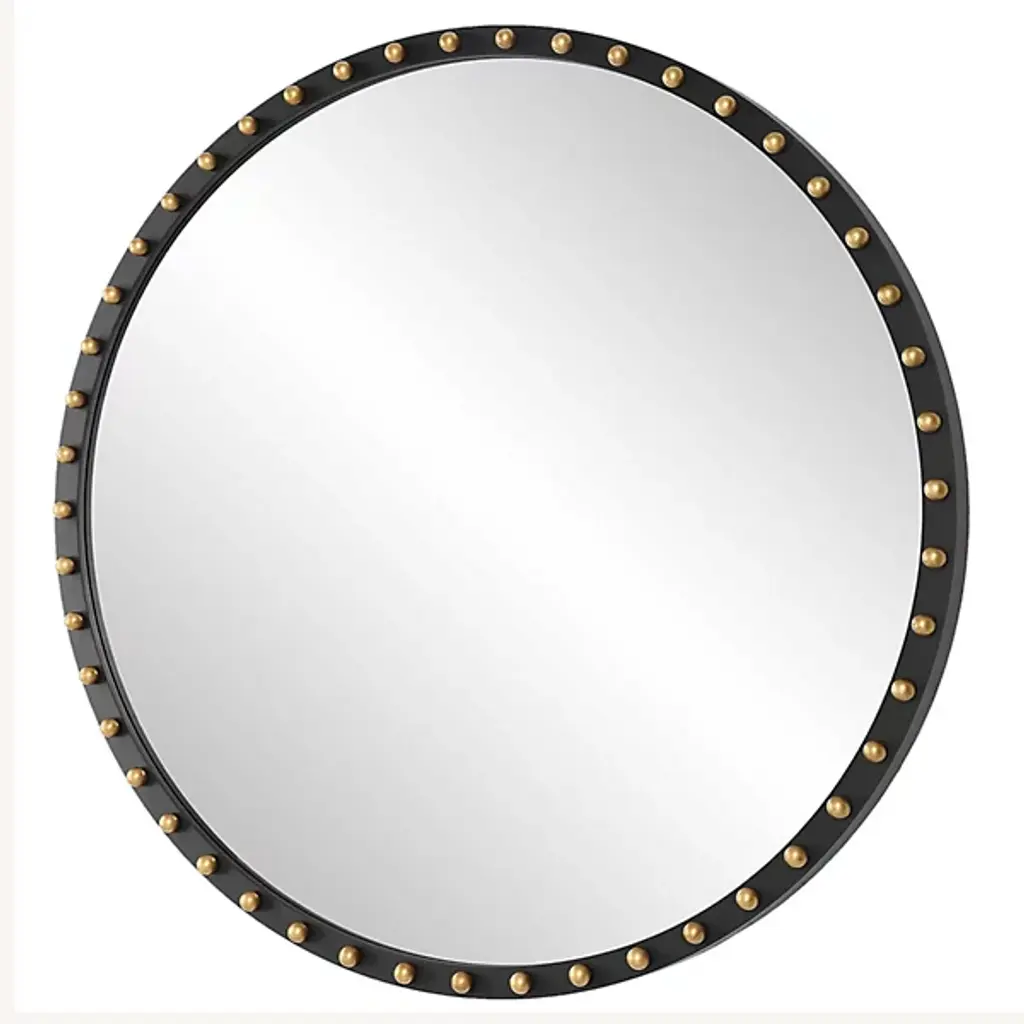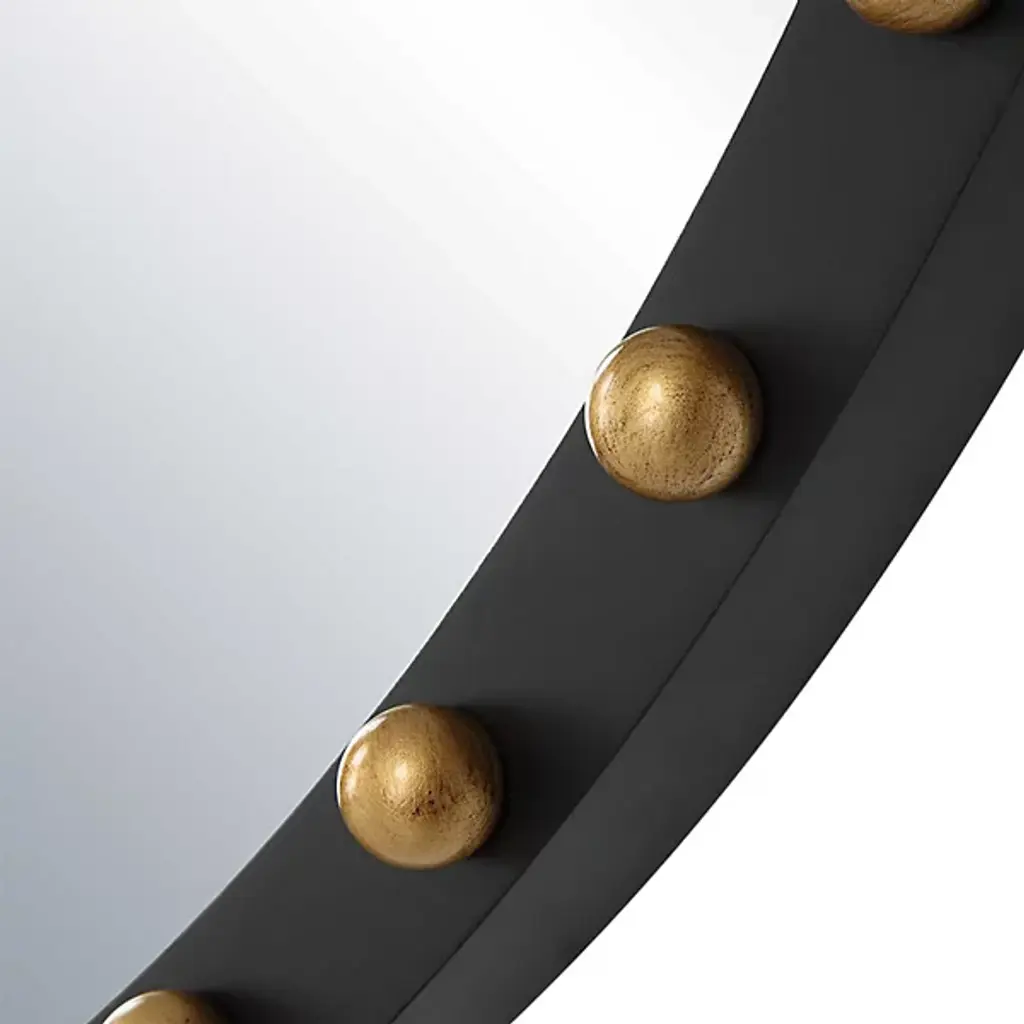 The Sele Mirror from Uttermost takes inspiration from antique jewelry boxes, adorning its circular frame with carefully placed beech wood spheres. Grace Feyock's artistic vision comes through in how each rounded accent punctuates the solid frame, creating a recurrent pattern that draws the eye around its circumference. Made from robust beech wood, this mirror unites raw materials with polished detailing, making it an artistic addition to any wall.