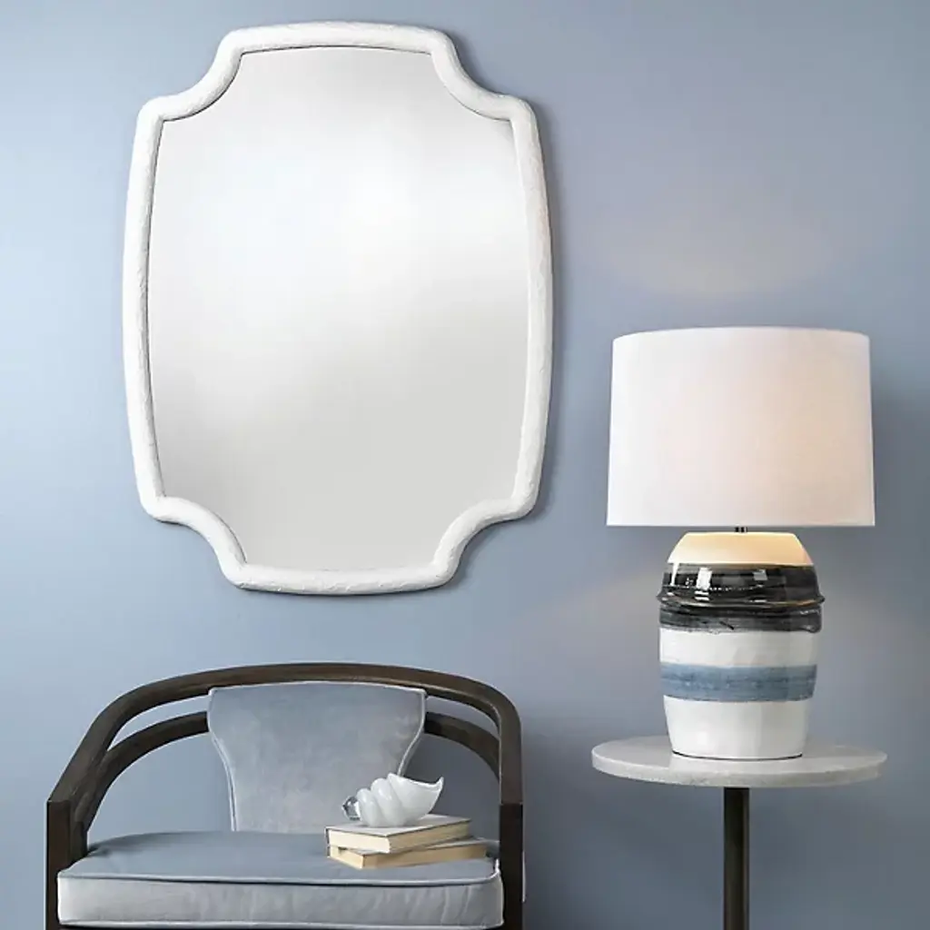 Introducing the Selene Wall Mirror by Jamie Young Co. This mirror is an exquisite reflection of elegance and style. This stunning mirror features non-beveled glass, emphasizing its, modern design. The contoured framework adds a touch of sophistication, elevating your space with its graceful presence. Meticulously crafted of polyethylene, the Selene Wall Mirror seamlessly blends functionality and artistry. Create an enchanting focal point in your home and embrace the timeless beauty of the Selene Wall Mirror by Jamie Young Co.