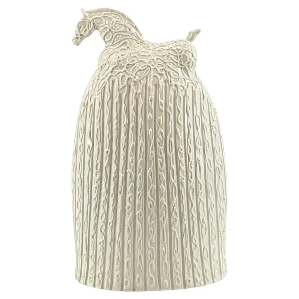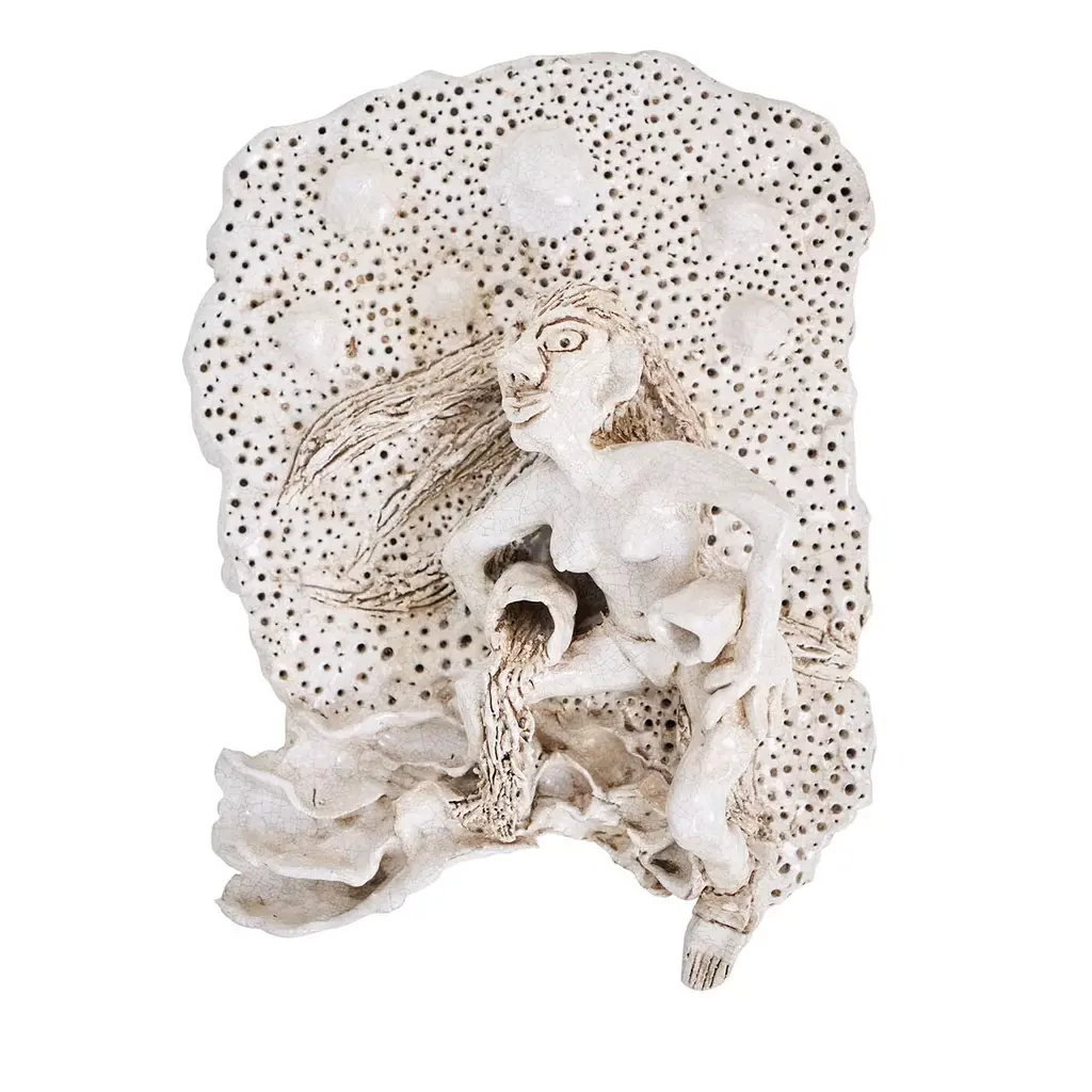 Self Sufficiency Wall Mirror in White Glazed Ceramic by Lucile GracileDimensions: D 15 x W 59 x H 81 cm. Materials: Glazed ceramic and glass mirror.Born in 1988, lives and works in Paris.Ceramic artist using traditional plate modeling techniques, her work is based on the combination of primitive and universal forms to create designs that carry dreamlike symbolism.For her, our society tends to confine dreams and creative expression tochildhood, values becoming derisory in adulthood, to the detriment ofefficiency and productivity.Through her sculptural objects, she seeks to let her inner child and herUtopias express themselves.Everyone can see personal meanings, thus reconnecting with theirpast imagination.Her imagination is nourished by ancient mythologies and the immemorialThe fascination of human beings with the afterlife.Her work is derived from the symbolism of stars, esoteric rituals andspiritual places.