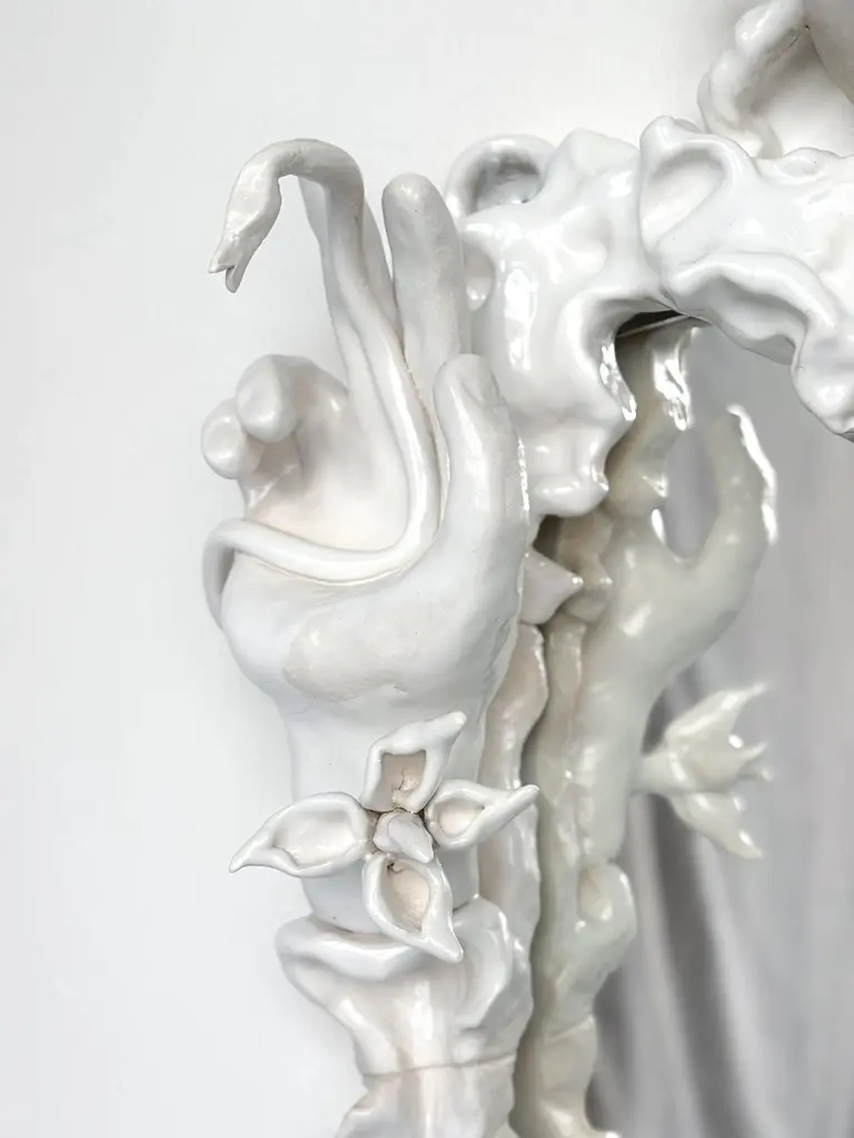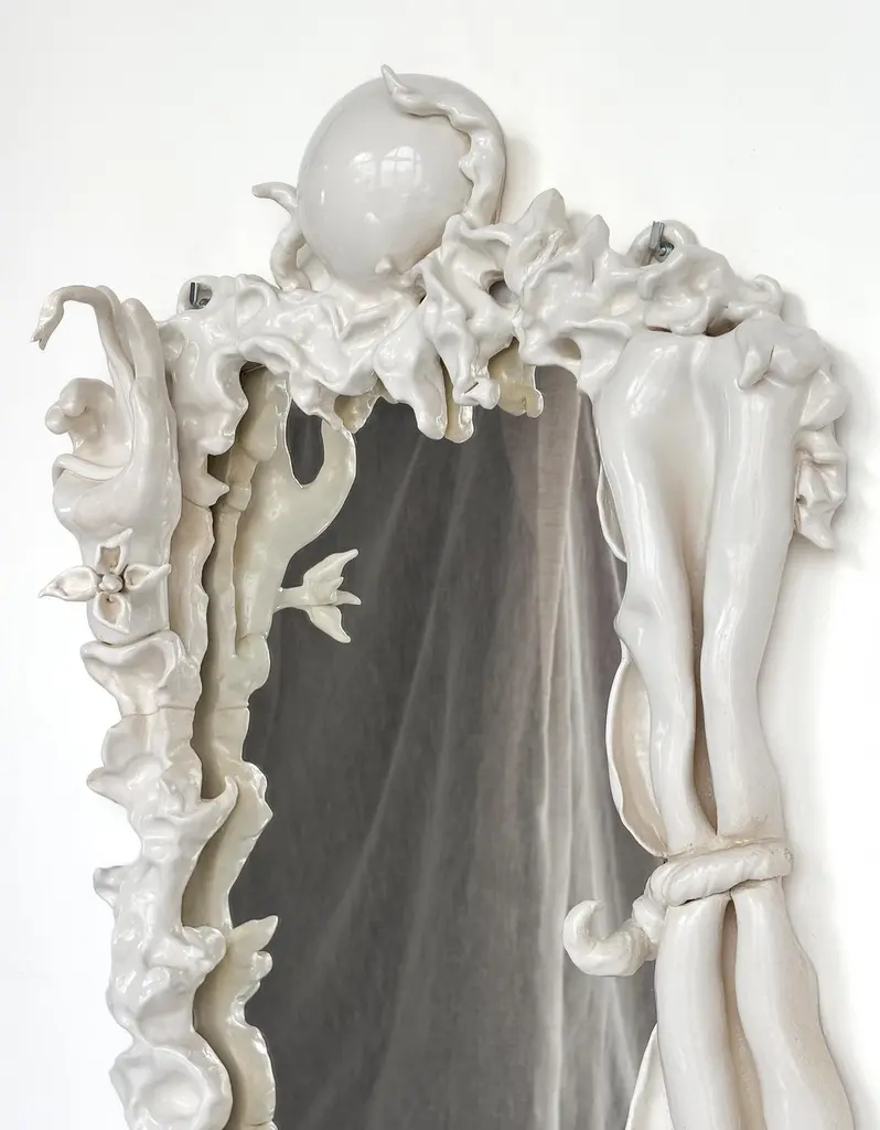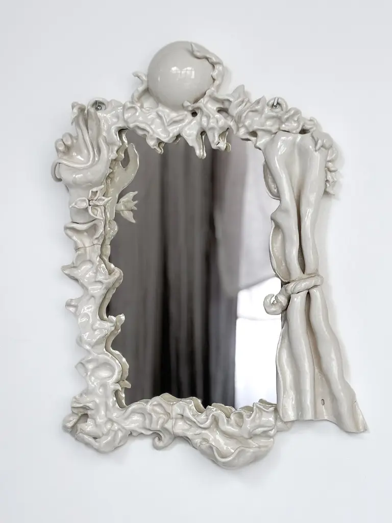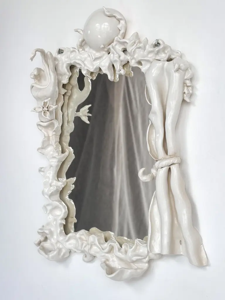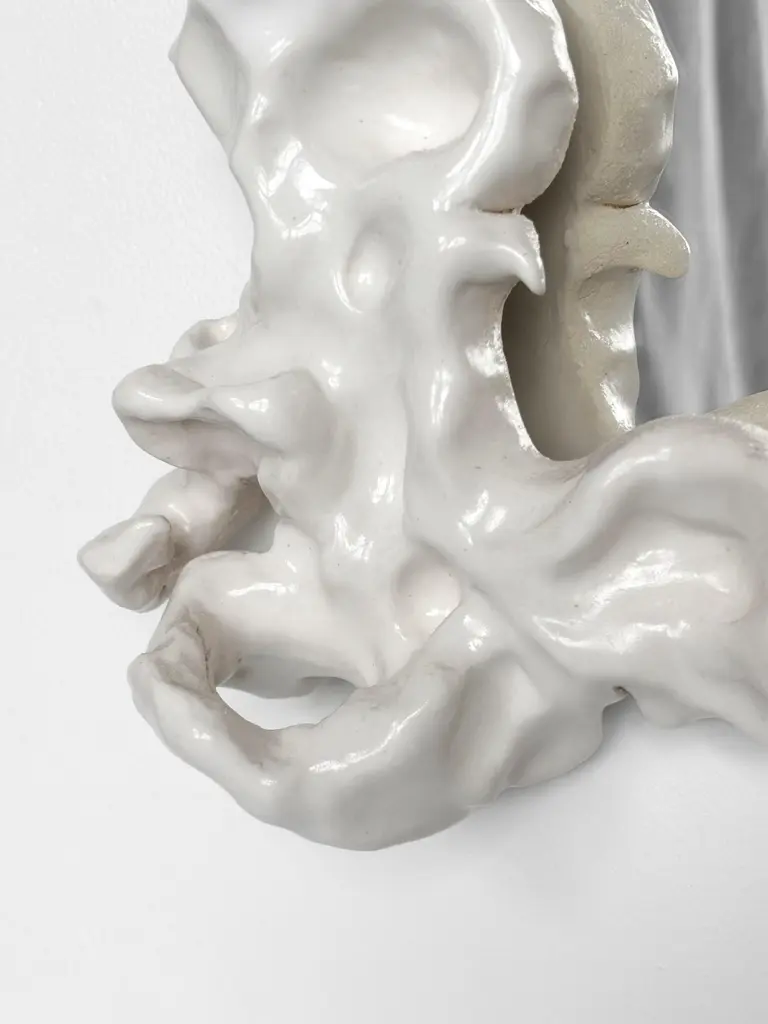 Self Sufficiency Wall Mirror In White Glazed Ceramic By Lucile Gracile
