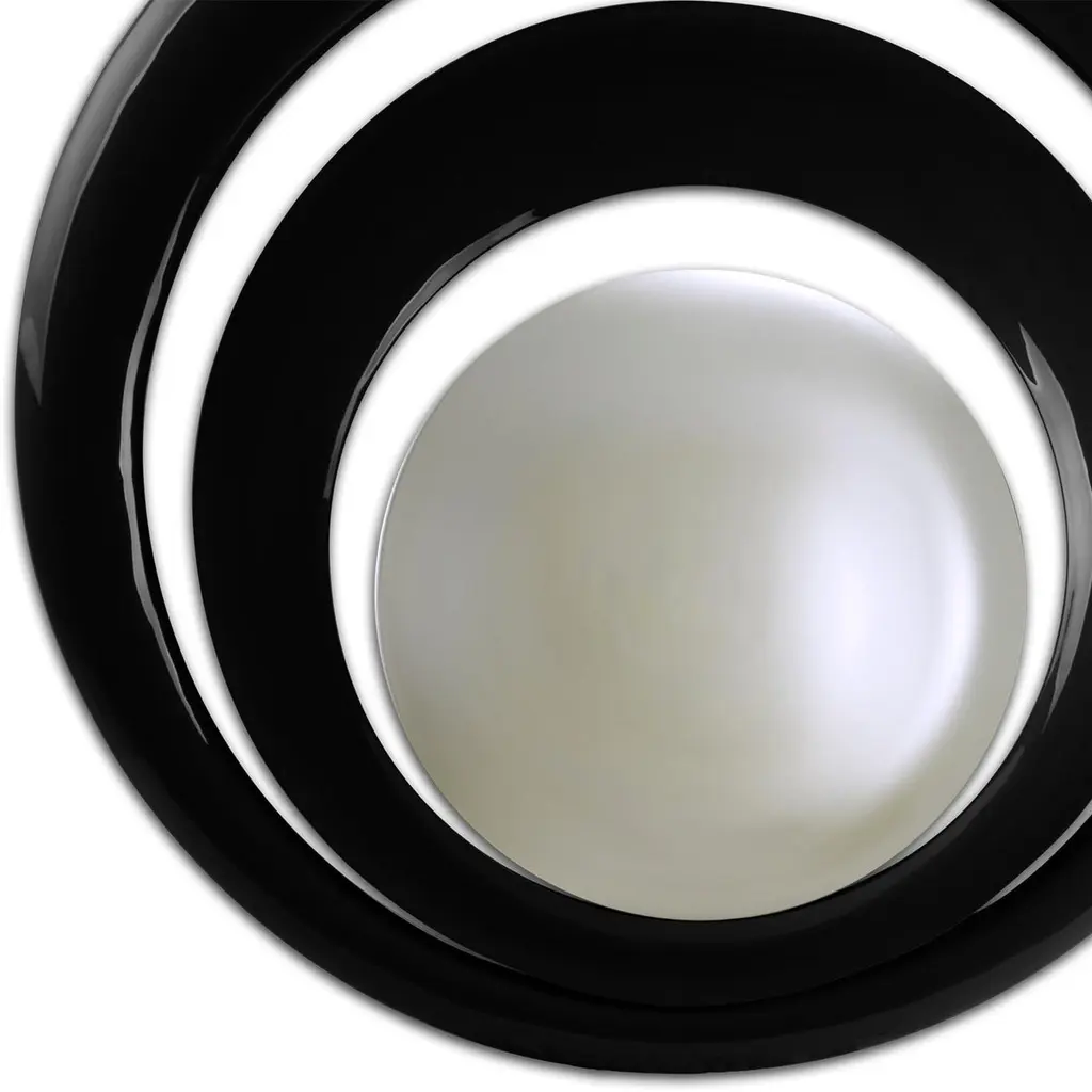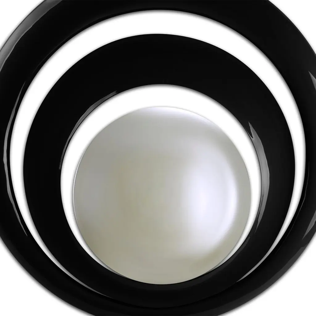 Mirror Serail round with 2 round frames insolid hand carved wood in black lacqueredfinish. With central round convex mirror.Diameter 125cm x Height 125cm. Price: 8400,00€.Also available in:Diameter 104cm x Height 104cm. Price: 6500,00€.Also available in white lacquered finish, on request.