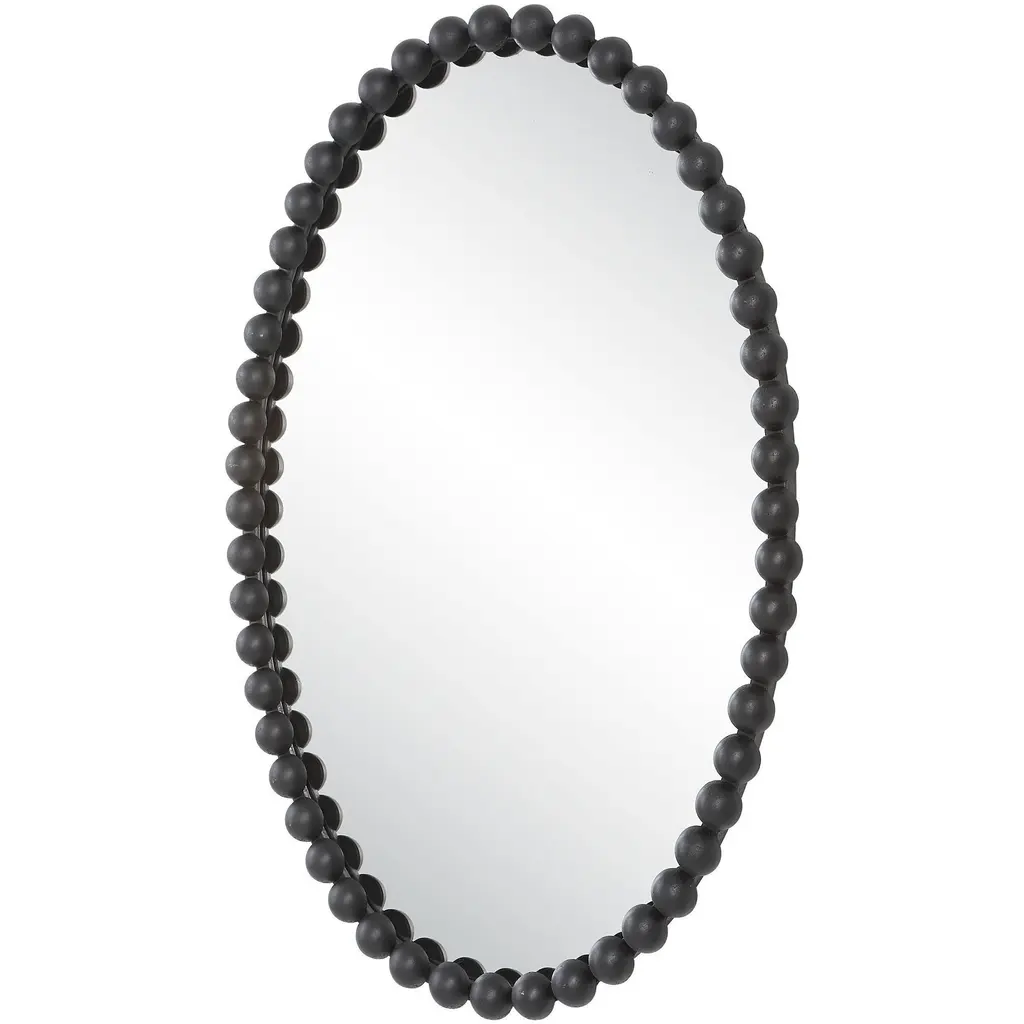 The Serna Oval Features An Elegant Curved Iron Frame With A Beaded Profile Finished In A Stylish Matte Black. May Be Hung Horizontal Or Vertical.