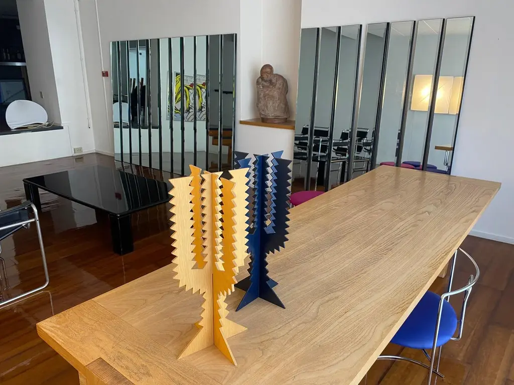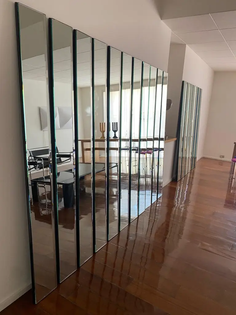 Created by Studio Simon Gavina, Otero is beveled on the vertical edges, its support being polyester painted, with a mirror-gloss finish. Like an arrow slit in the wall, or a slash of light, this rectangular mirror reflects everything that surrounds it.The glass is beveled along the vertical edge and provided with a painted support with polished mirrored finish."Dino Gavina, (1922-2007), began his career in the 40's and soon began to gain support from many of the country's leading designers and architects: "fathers of the country", as he jokingly refers to them, including Carlo Scarpa, Enzo Mari, Marcel Breuer, to name but a few. His work in those years was an important starting point for what then came to be known as Italian Style, and has since come to stand for top quality, giving Italian design the prestigious reputation that it still enjoys today throughout the whole world." From Cassina web site