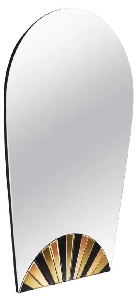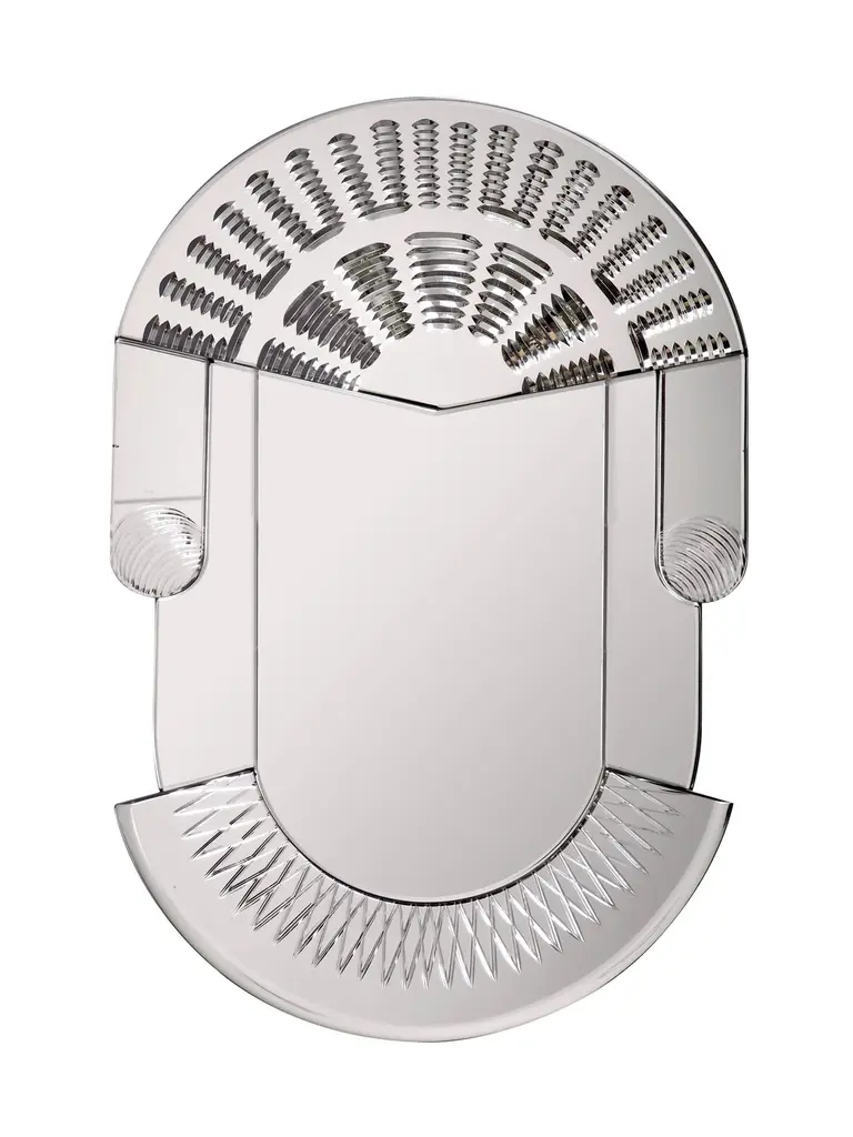 Set of 2 large scena Murano mirrors by Nikolai Kotlarczyk. Dimensions: Olympic: D 3 x W 60 x H 90 cm Rotonda: D 3 x W 60 x H 90 cm Materials: silvered carved glass, golden carved polished steel. Nembro marble (base).Also available in different designs and dimensions. Please contact us for more information. Scena is a series of solid glass mirrors full of depth and bold graphic lines, expertly crafted by hand in Murano. A central inspiration was the forms and spatial designs of the architect Andrea Palladio and his constant focus on the vista within his work. Working with the skilled glass artists of Murano, a subtle use of perspective and depth was created by the intricate carving and grinding of the mirrored glass surfaces, then silvered to give depth to the details./Scè-na/ from the framing of the landscapes surrounding La Rotonda, to the influence of the Renaissance painters in the illusionary set design for the Teatro Olimpico, the Palladio's architecture constantly played with our own perception of space.Nikolai Kotlarczyk is an Australian designer based in Copenhagen, Denmark since 2013. Graduating from the Queensland College of Arts in Brisbane, his experience in Australia was strongly influenced by his time with renowned design and manufacturing house Tait.Nikolai’s studio focuses on design pieces full of narrative. A strong connection with geography, history, materiality and rituals can be seen within his pieces. Working within a self-expressed decorative minimalist style, his work aims to simplify the act of story telling through an honest pallet of materials and bold forms.His work includes self initiated edition pieces and design pieces for manufactures, and has been shown in a number of international exhibitions including Milan, Paris, Stockholm, Copenhagen and Melbourne.Nikolai is a member of studio and workshop Hal 4 in Nordhavn, regularly contributes to Australian online publication Yellowtrace, and was a co-founder of the culture-house in Copenhagen's inner north, Øen. He also works in various roles for design companies including Pulpo and New Works.