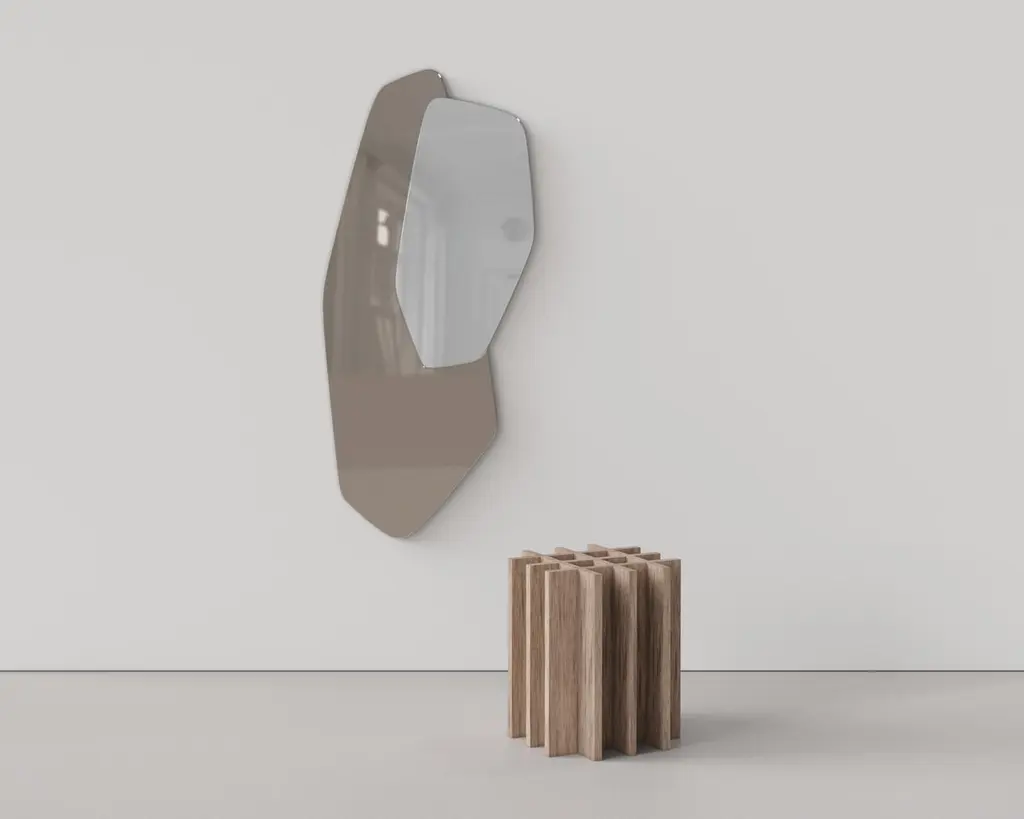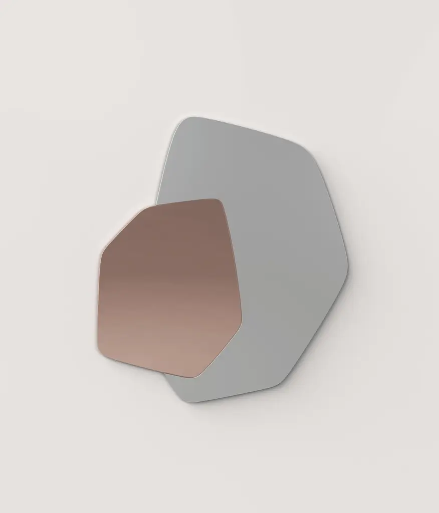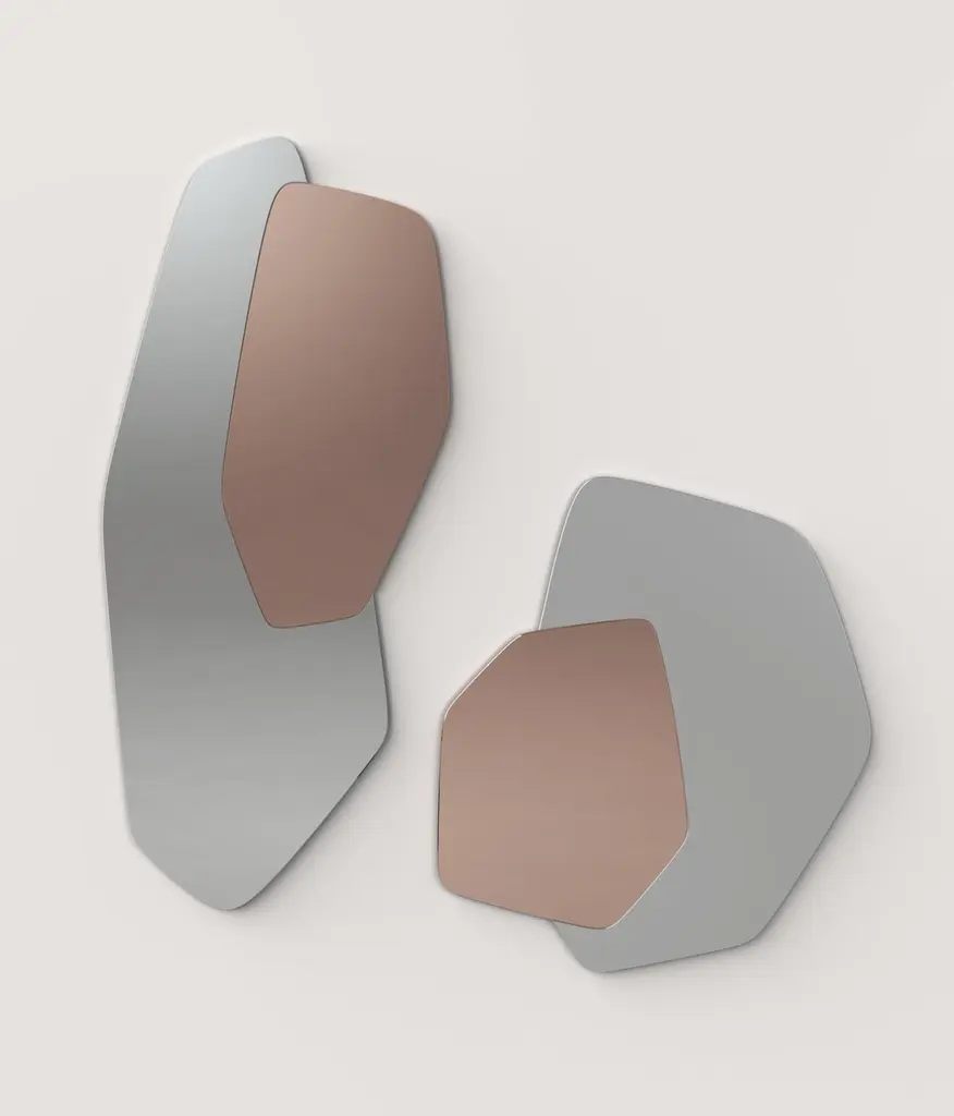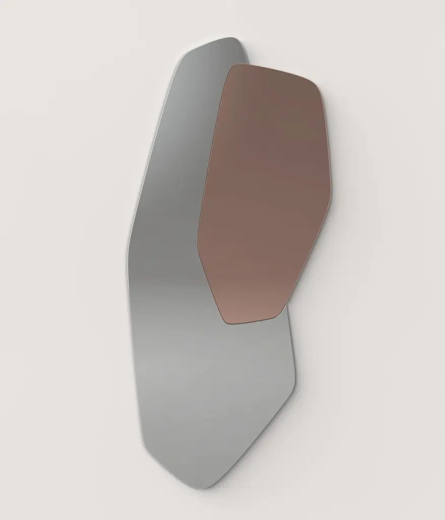 Set of 2 Nori V1 and V2 wall mirrors by Simone FanciullacciLimited Edition of 1000 pieces. Signed and numbered.Dimensions: D 56 x W 0.5 x H 124 cm // D 70 x W 0.5 x H 79 cm.Materials: classic finish mirror+ copper finish mirror// classic finish mirror+ fumé finish mirrorNori is a collection of contemporary mirrors made by Italian artisans in different shades and colors. It is part of the collectible design language Nori that has been developed by the Edizione Limitata’s art research team in Milan. Nori is made up of elegant shapes of color that will catch the attention of all who pass in front of it.It is not just a reflective surface but a unique piece inspired by the unpredictability of splashes of color. Nori’s language plays with its chiaroscuro contrasts in a spontaneous way and its organic forms exchange light with each other with extreme lightness.Edizione Limitata, that is to say “Limited Edition”, is a brand promoting and developing objects which combine a unique design with the tradition and quality of made in Italy.Edizione Limitata celebrates love for design, details and dialogue between different materials and it constantly pursues to strike a balance between shape and matter, project and production.The collection is the result of such a conception: objects which are able to become part of everyday life and tell a story of passion and research.Edizione Limitata is a brand curated by Simone Fanciullacci.