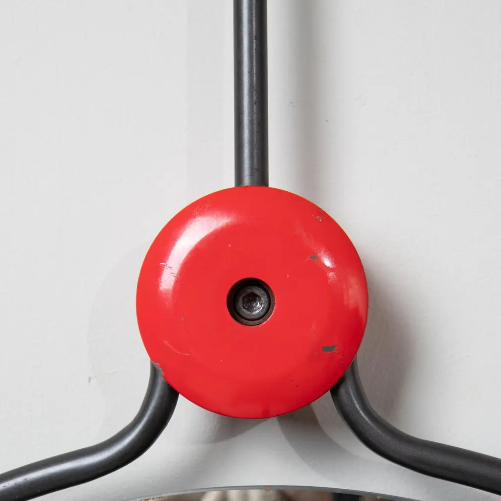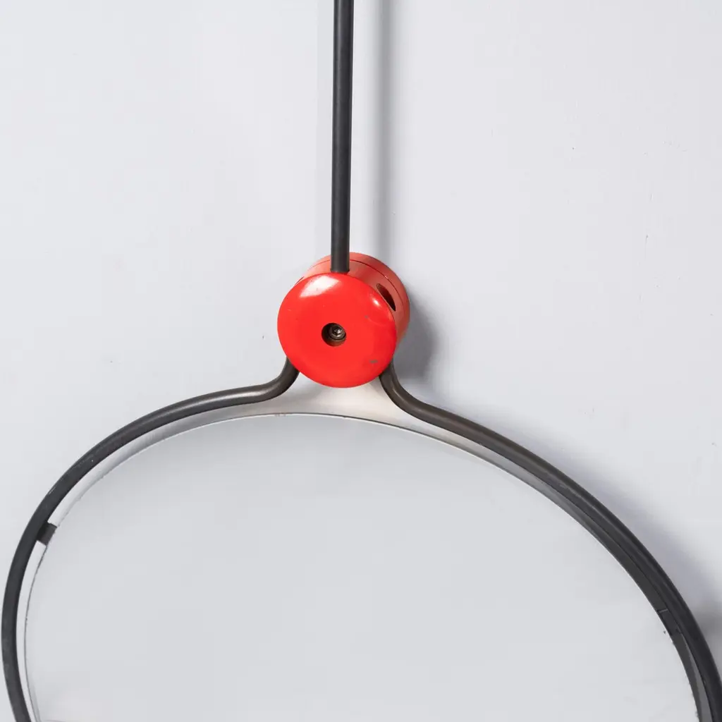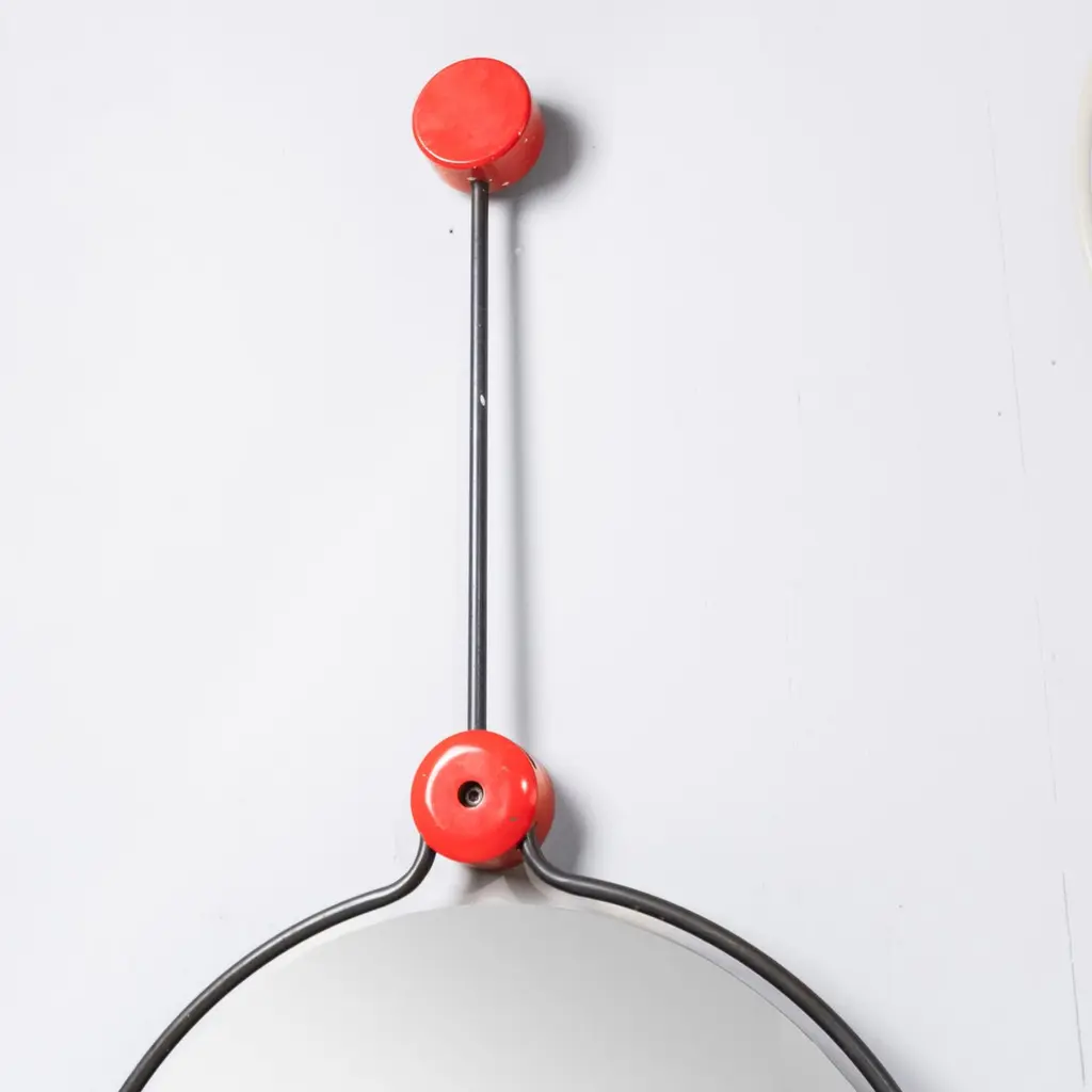 Set of 2 red and yellow metal swivel mirrors, two unique pieces that will make your interior an ode to the space age stille. We also sell the mirror dies separately.