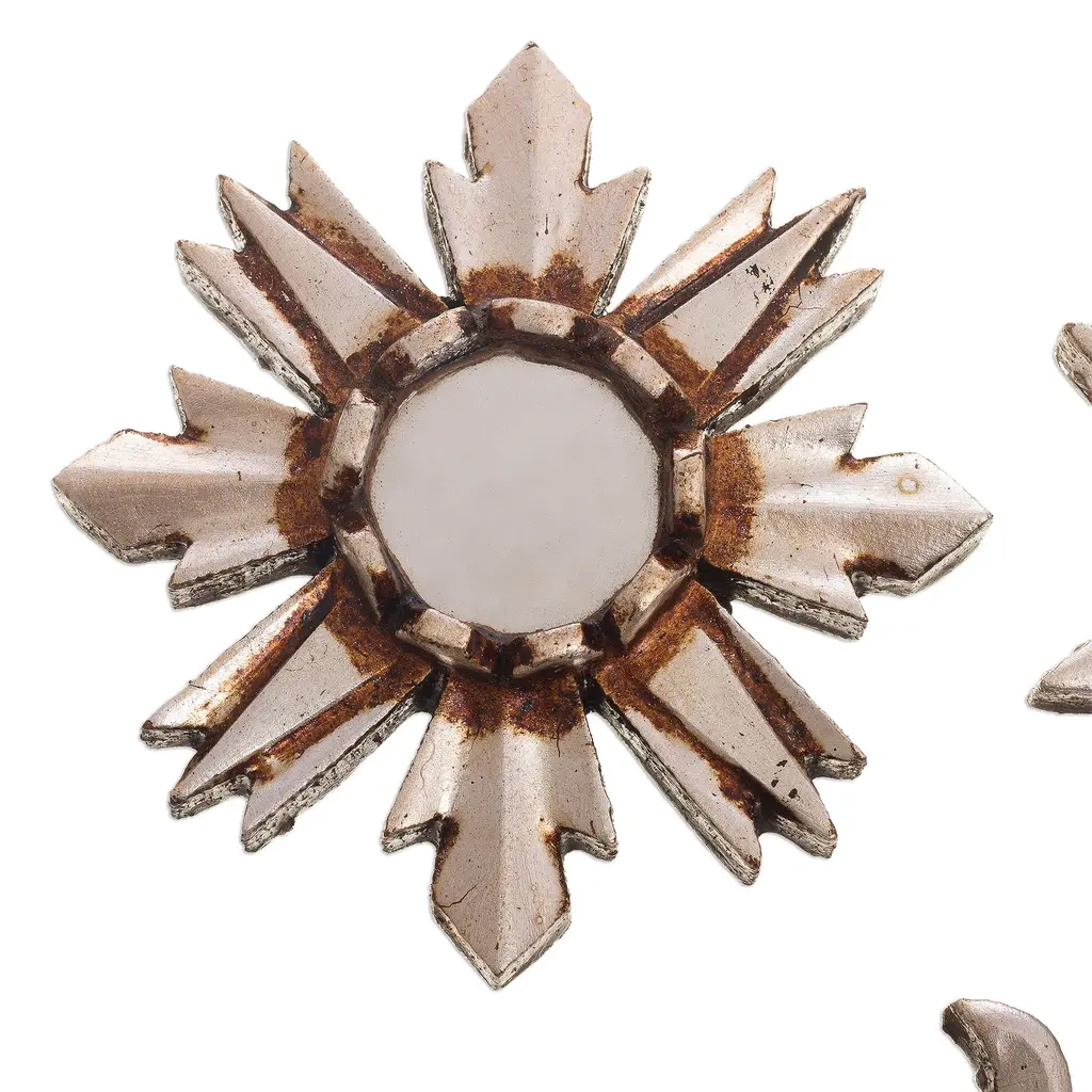 Set Of 3 Wood Mirror Wall Accents With Aluminum Leaf- Ancient Suns In Silver