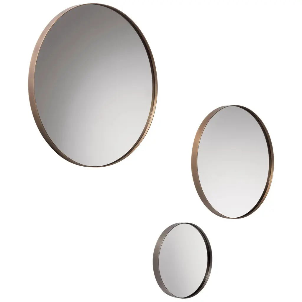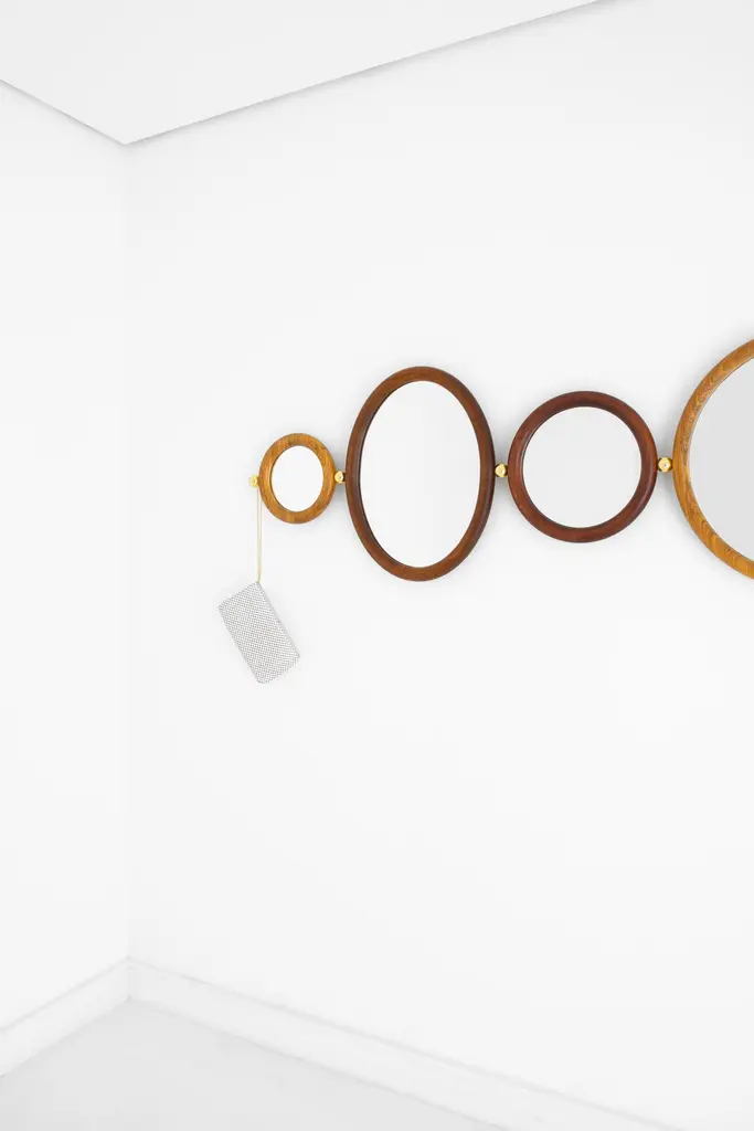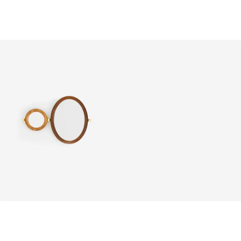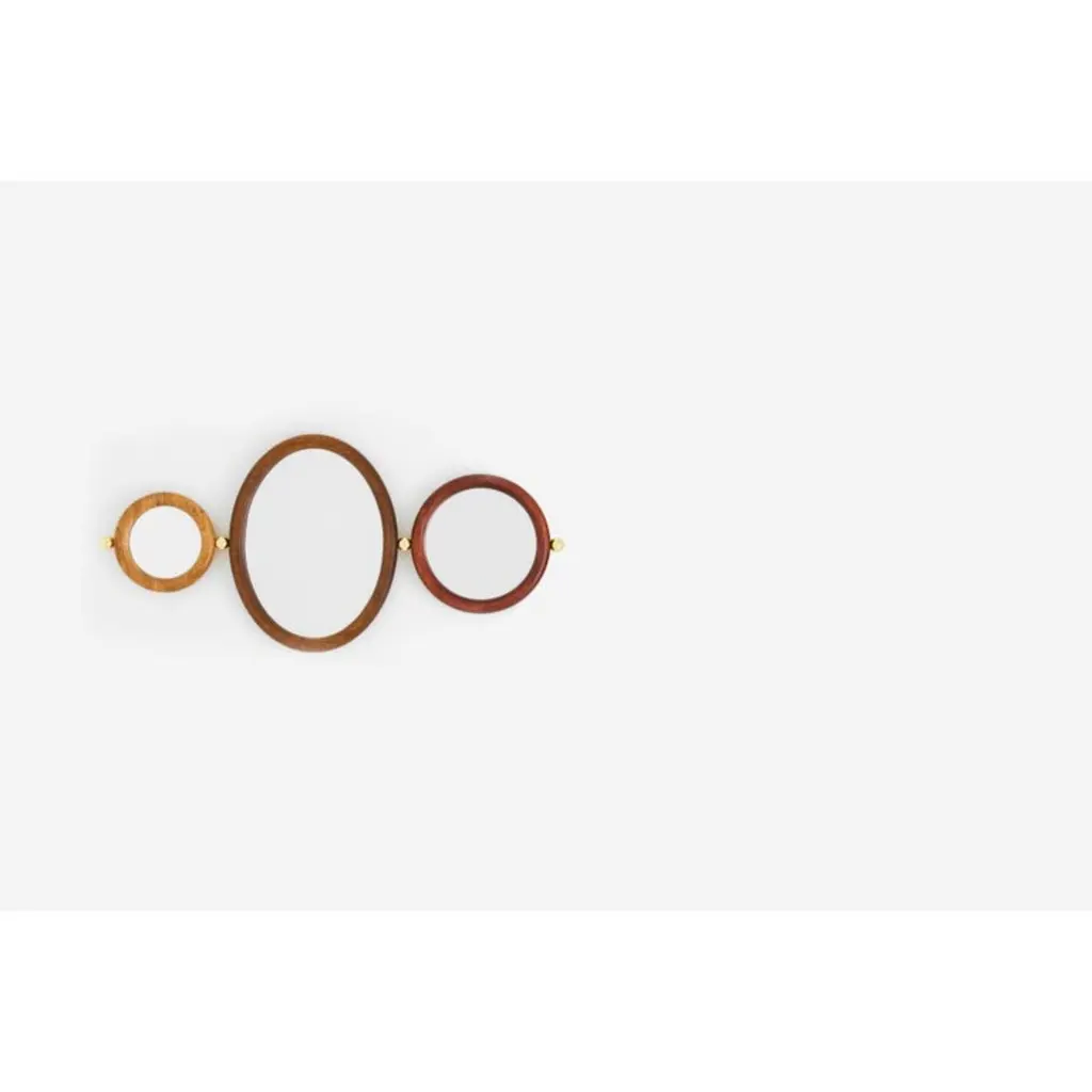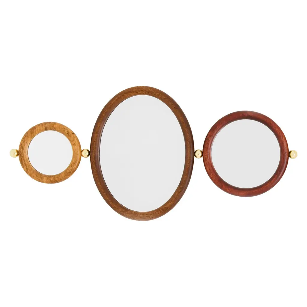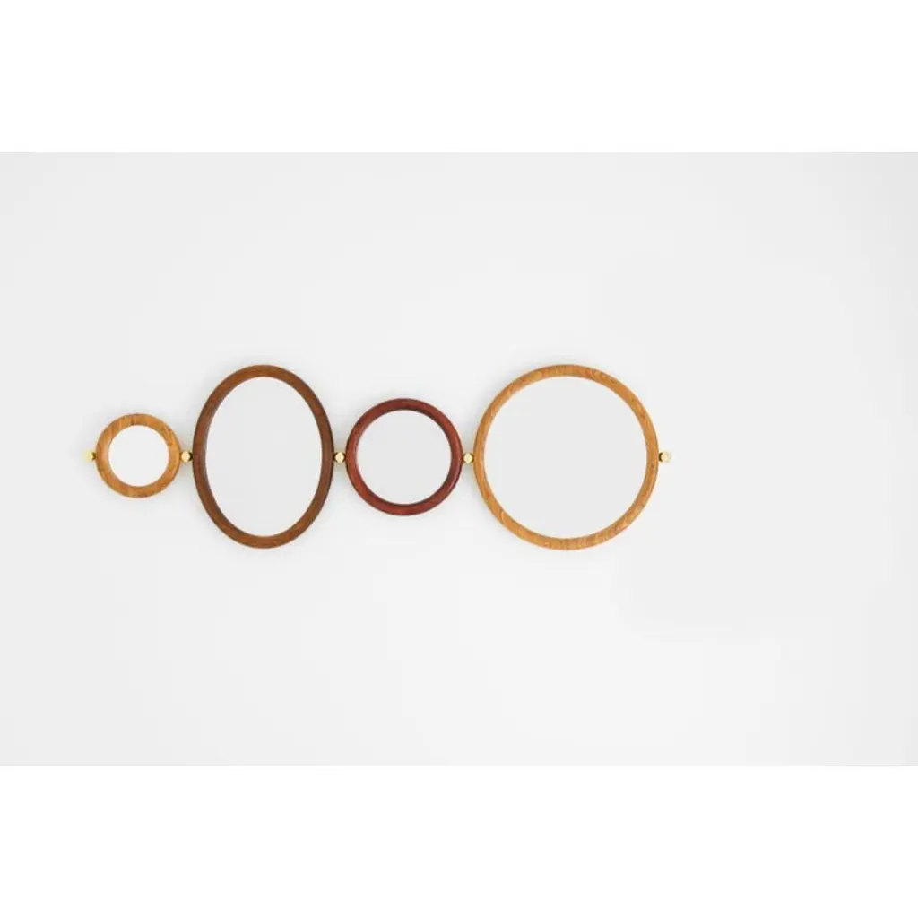 Set of 4 Aro mirrors by Leandro Garcia contemporary Brazil designDimensions: H 25 x 5.6 x L 32 cmH 35 x 5.6 x L 42 cmH 55 x 5.6 x L68 cmH 55 x 5.6 x L 62 cmMaterials: Light, medium, dark or reddish tauari wood frame and background Silver mirror Polished brass spheres Other dimensions available: H 45 x 5.6 x L 52 cm The initial idea for the Aro Mirror came during the social project “Mãos em Ação” (“Hands in Action”), a realization of Instituto Campana in partnership with ÔdaDesign Club, produced by Consuelo Cornelsen and mentoring by Humberto Campana. Later developed, Aro Mirror has a thick round-section solid wooden frame forming a circle or an ellipse. Embedded to it is the mirrored surface. Each side edge of the frame receives a solid metal sphere that can be used as ahanger. Available in several dimensions, Aro Mirror still allows to form sets through the metal spheres, which this time connect the pieces in sequence and create different compositionsLeandro GarciaContrary to a general trend of large-scale production and homogenization, he develops unique and exclusive designs. His creative process claims on rational and functional solutions that explore the essence of shapes in the conception of the object and/or space. Leandro Garcia seeks to develop a timeless aesthetic, which translates into the disposal of excess and theexploration of primordial spatial matters such as proportion, light and shadow, materials and textures.The detail is essential, being directly connected to the design artwork.Architect and urban-planer graduated from the university “Universidade do Grande ABC(UniABC)”, Leandro Garcia began his studies in the area over 25 years ago, when attended technicalschool in Civil Engineering Drawing (ETE Julio de Mesquita). Still in university, he received an honorablemention at the International Competition of Architecture Schools from the 4th International Biennialof Architecture. He collaborated with two important Brazilian offices, receiving several national andinternational prizes. At first he worked with the designer Marcelo Rosenbaum and then with therenowned architect Isay Weinfeld.The architect was also professor at Campo Real College, at Centro Europeu and at ISAE/FGV.Nowadays, he directs his own studio, which develops residential, commercial and institutionalarchitecture projects, and also interior and furniture design. Many of these projects have been publishedin different Brazilian and foreign magazines, and products presented in several editions of the MilanDesign Week and commercialized nationally and internationally.He is also a professor at the Tuiuti University of Paraná (UTP) and the British School of Creative Arts (EBAC).