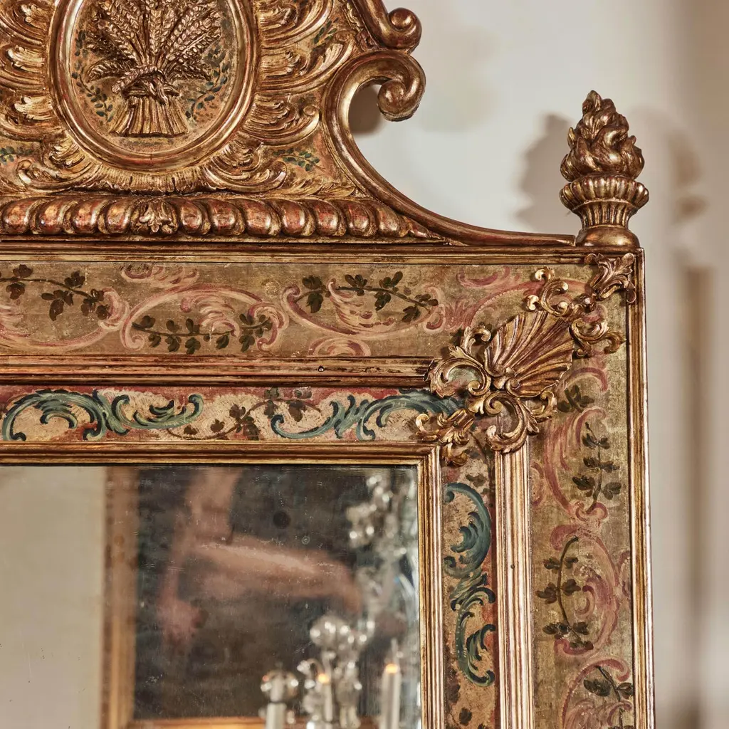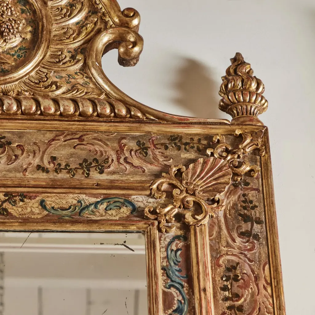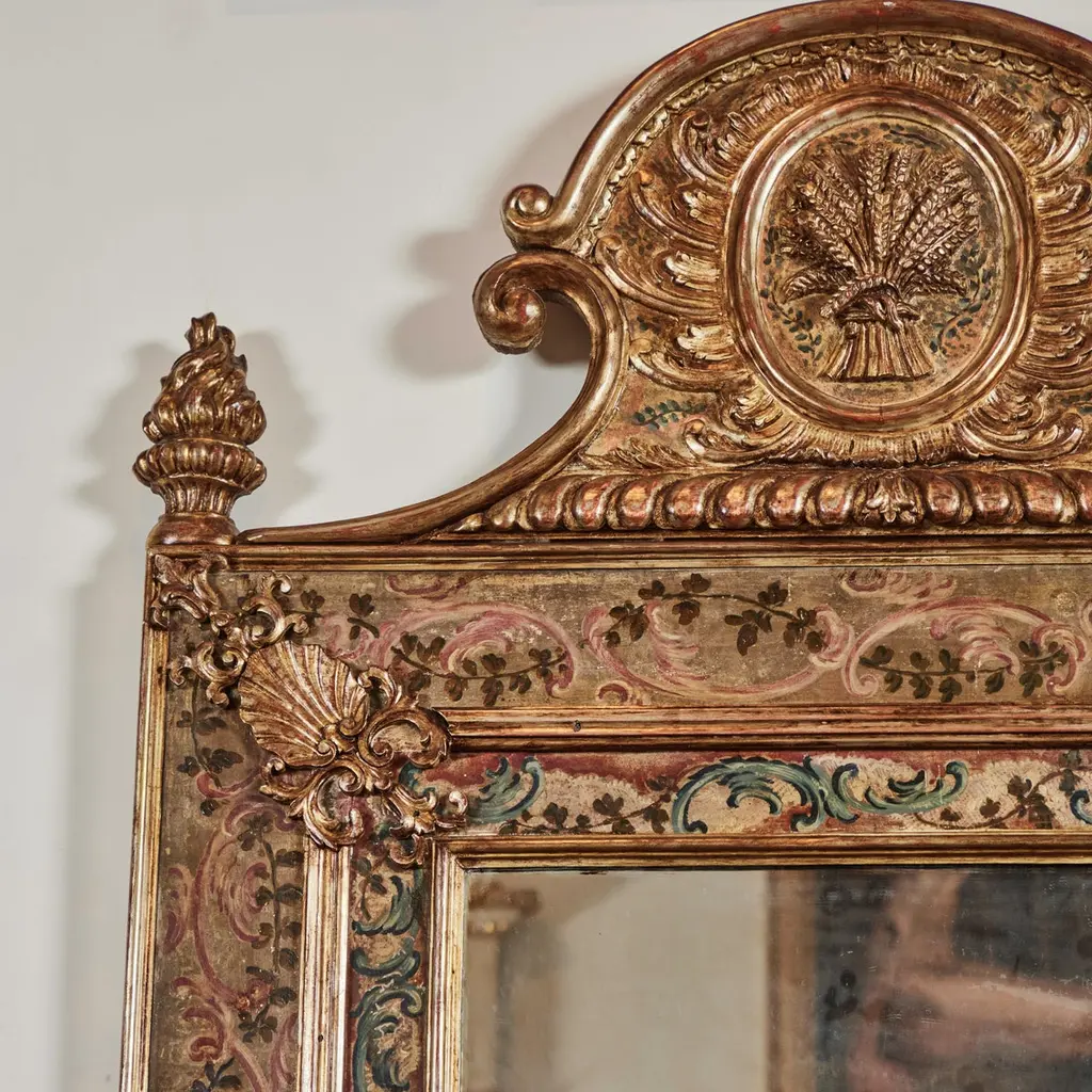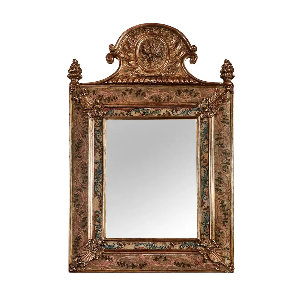 Set of 4 polychromed and gilded Neoclassical mirrors representing the four seasons. Original mirror glass has some age-related loss to plaiting and spotting. SOLD SEPARATELY. Weight noted is each.