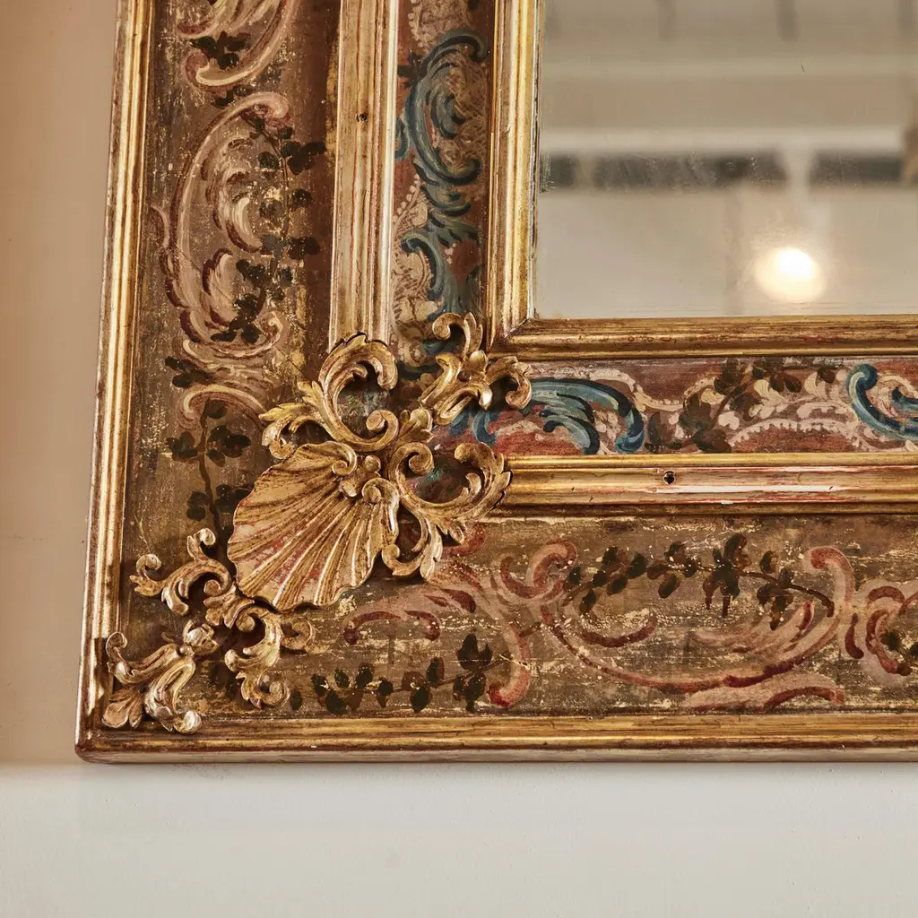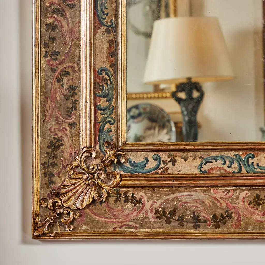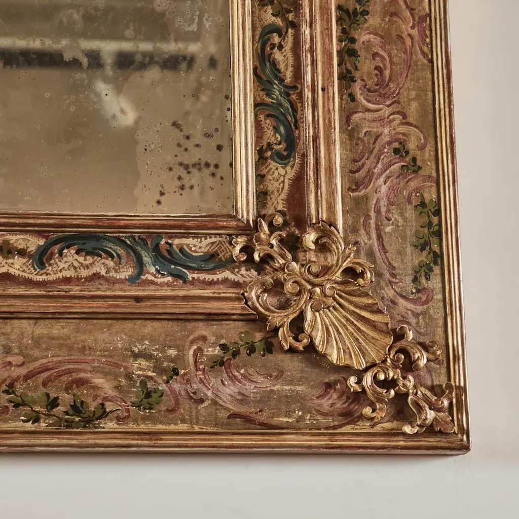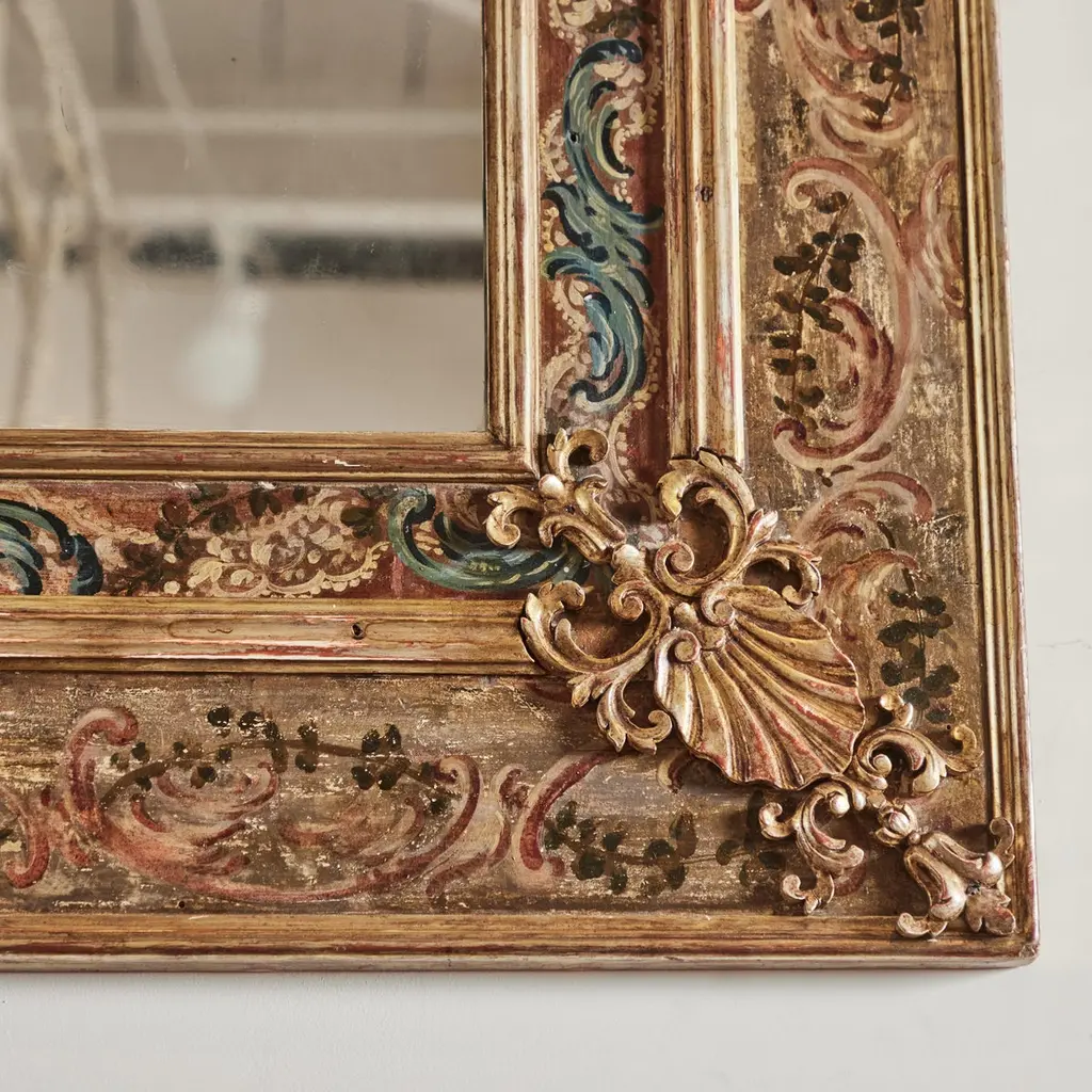 Set of 4 polychromed and gilded Neoclassical mirrors representing the four seasons. Original mirror glass has some age-related loss to plaiting and spotting. SOLD SEPARATELY. Weight noted is each.