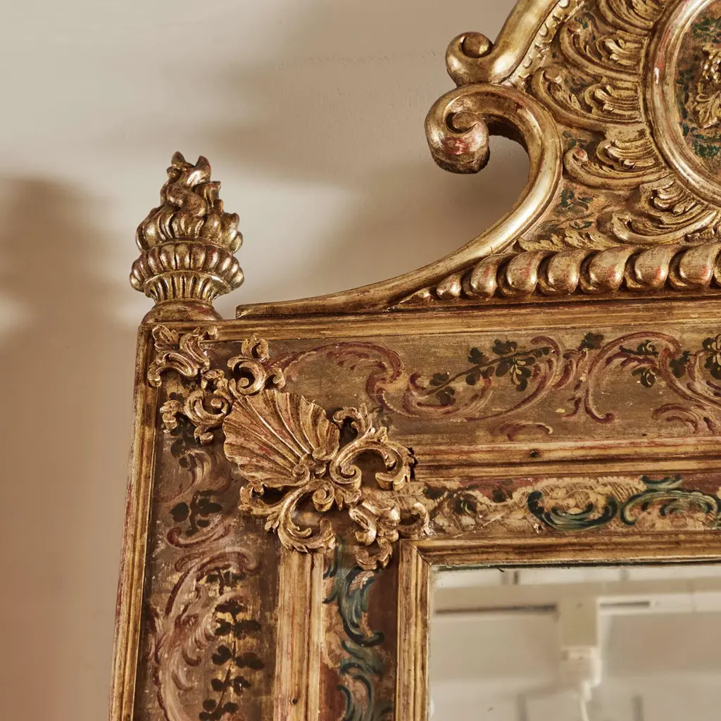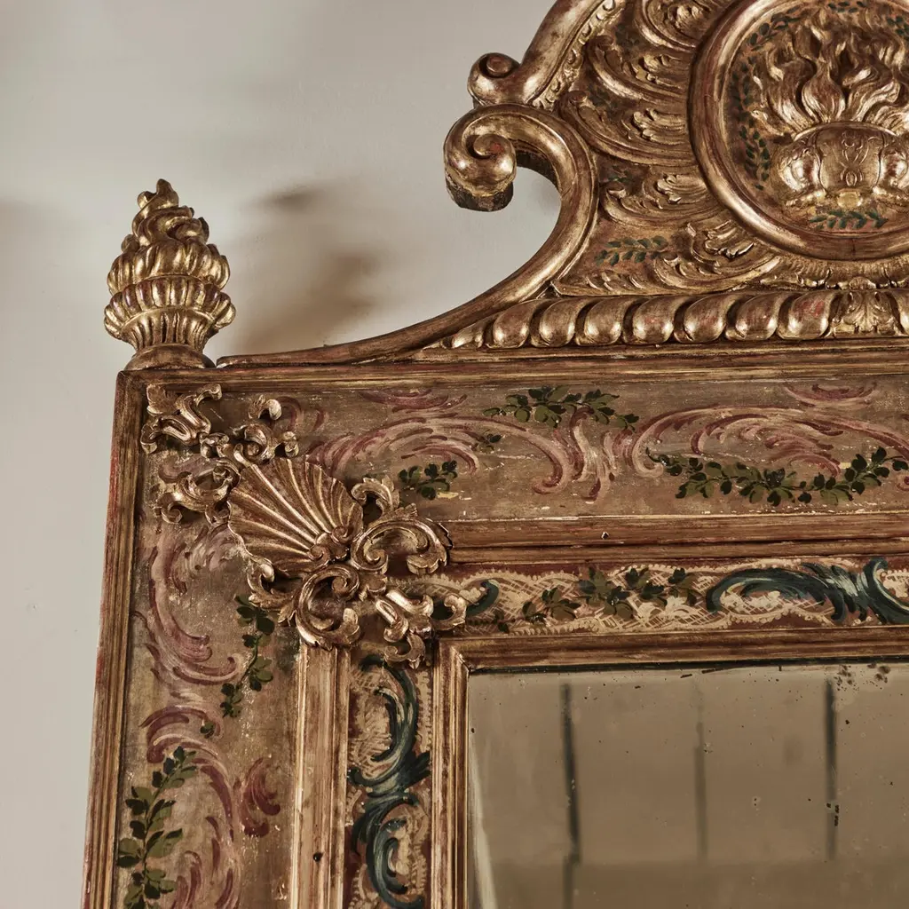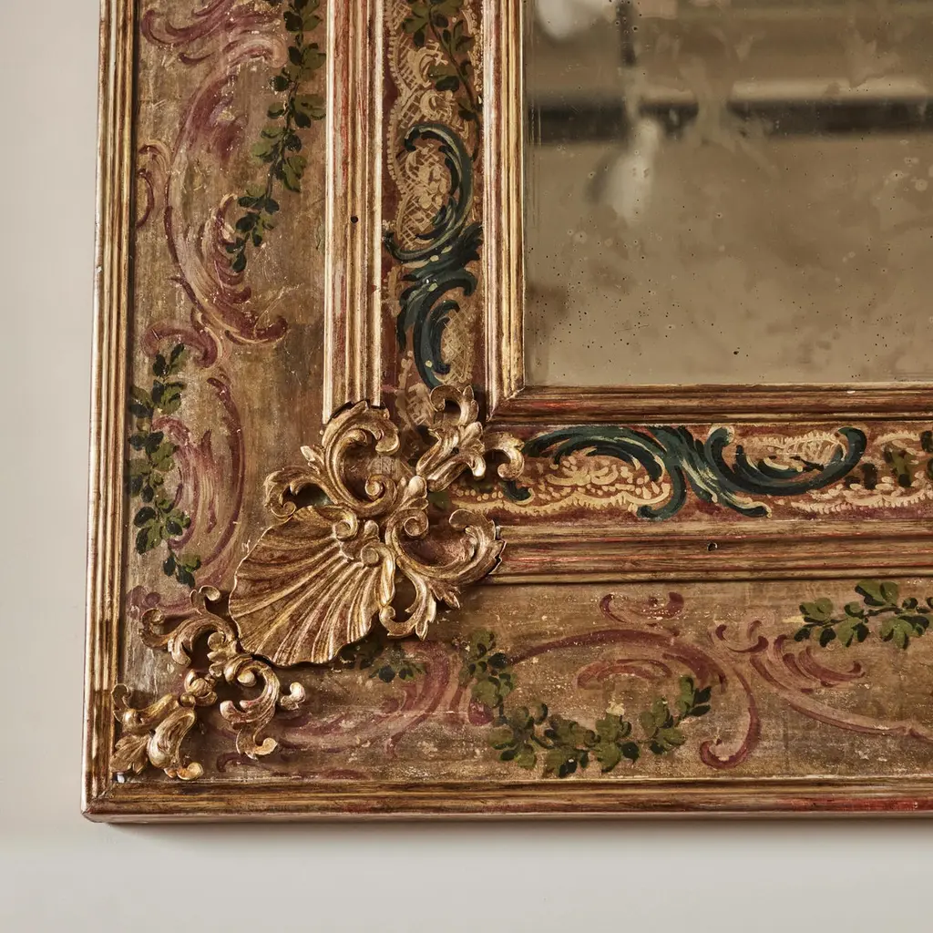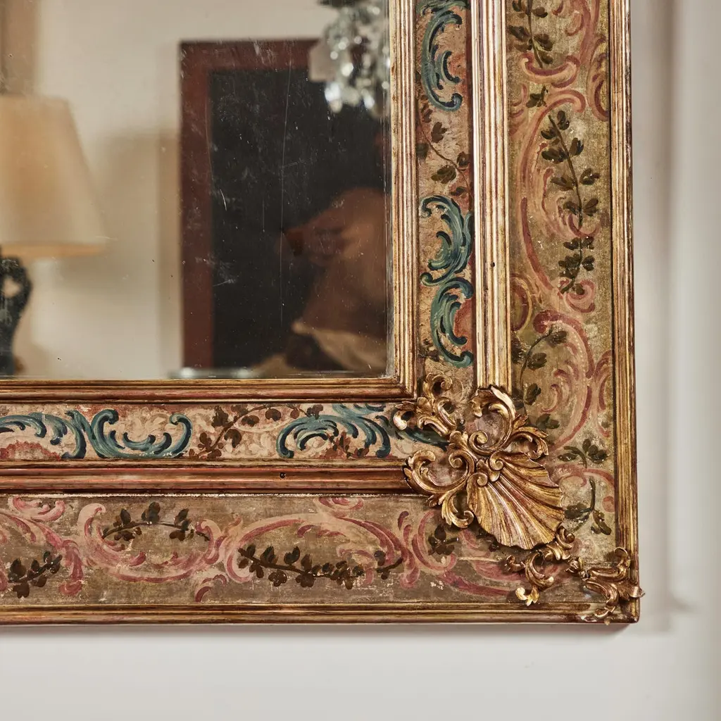 Set of 4 polychromed and gilded Neoclassical mirrors representing the four seasons. Original mirror glass has some age-related loss to plaiting and spotting. SOLD SEPARATELY. Weight noted is each.