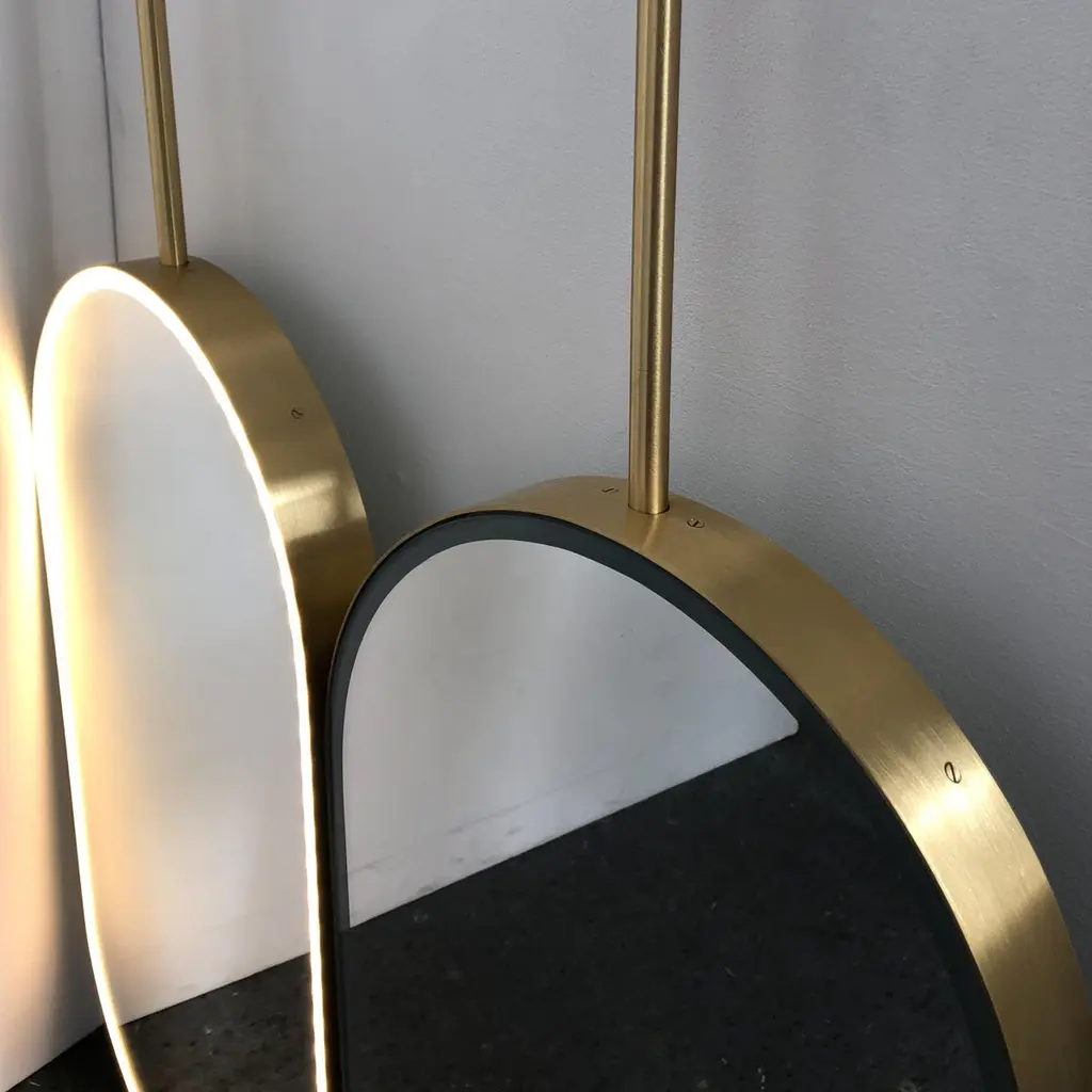 Set Of Two Capsula Illuminated Modern Ceiling Suspended Mirror With Brass Frame