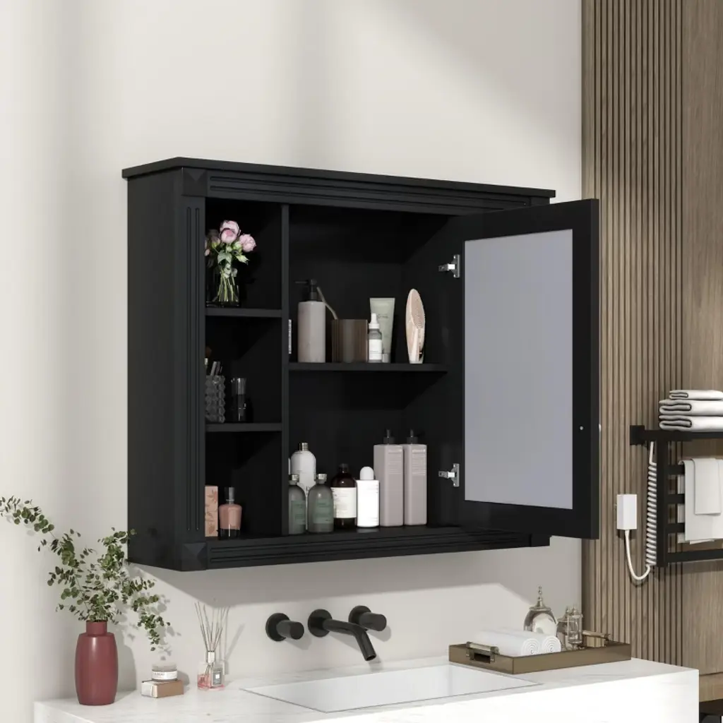 Sevobal Bathroom Storage Cabinet Wall Mounted Medicine Cabinet With Mirror And Concealed Storage, Black, 35"*7.1"*28.7"