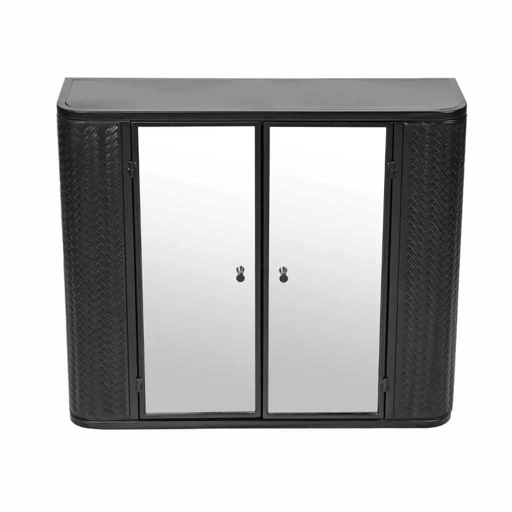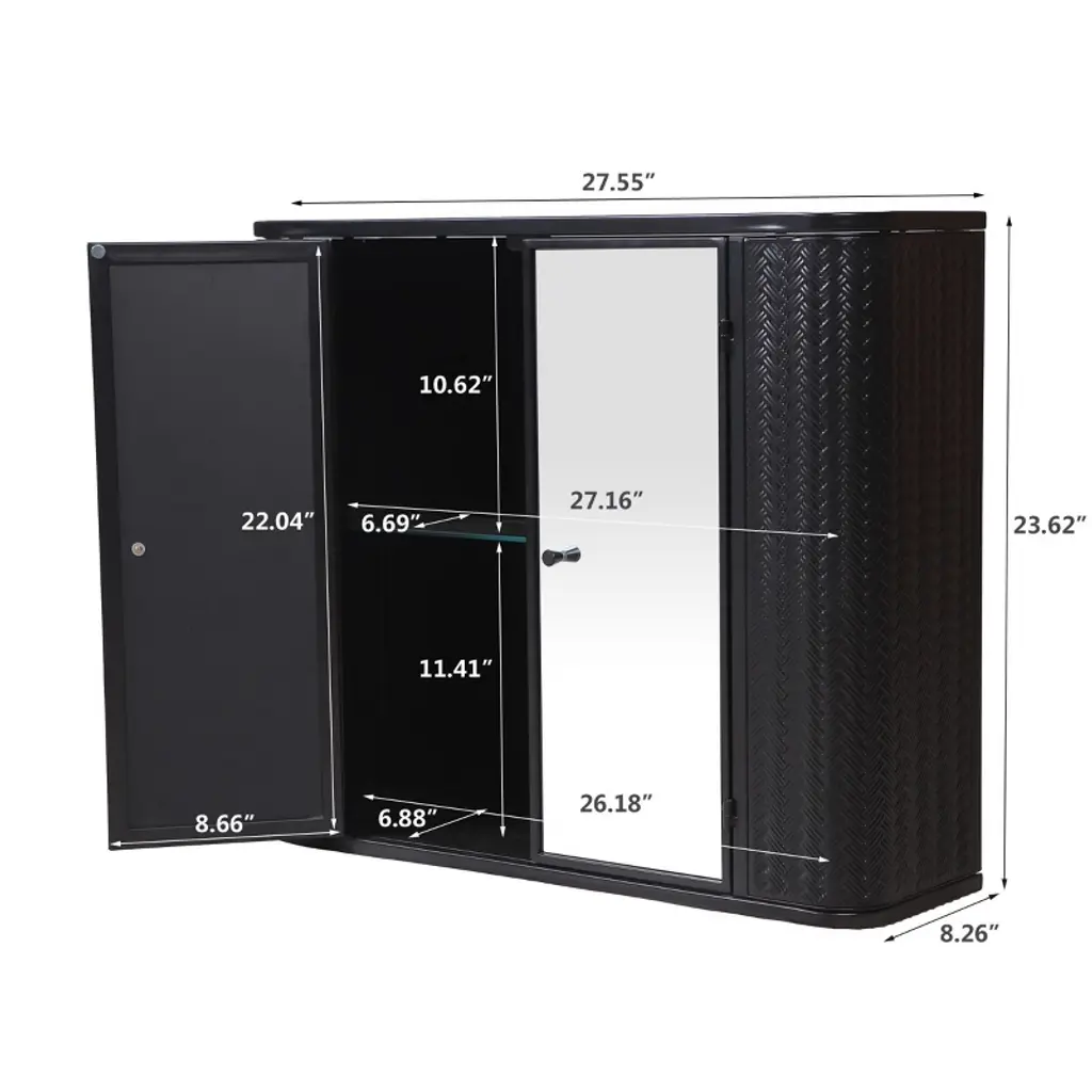 Sevobal Bathroom Storage Cabinet Wall Mounted Metal Frame With Mirror And Open Shelf For Vanity, Black, 27.55"*8.26"*23.62"