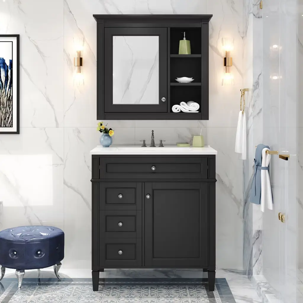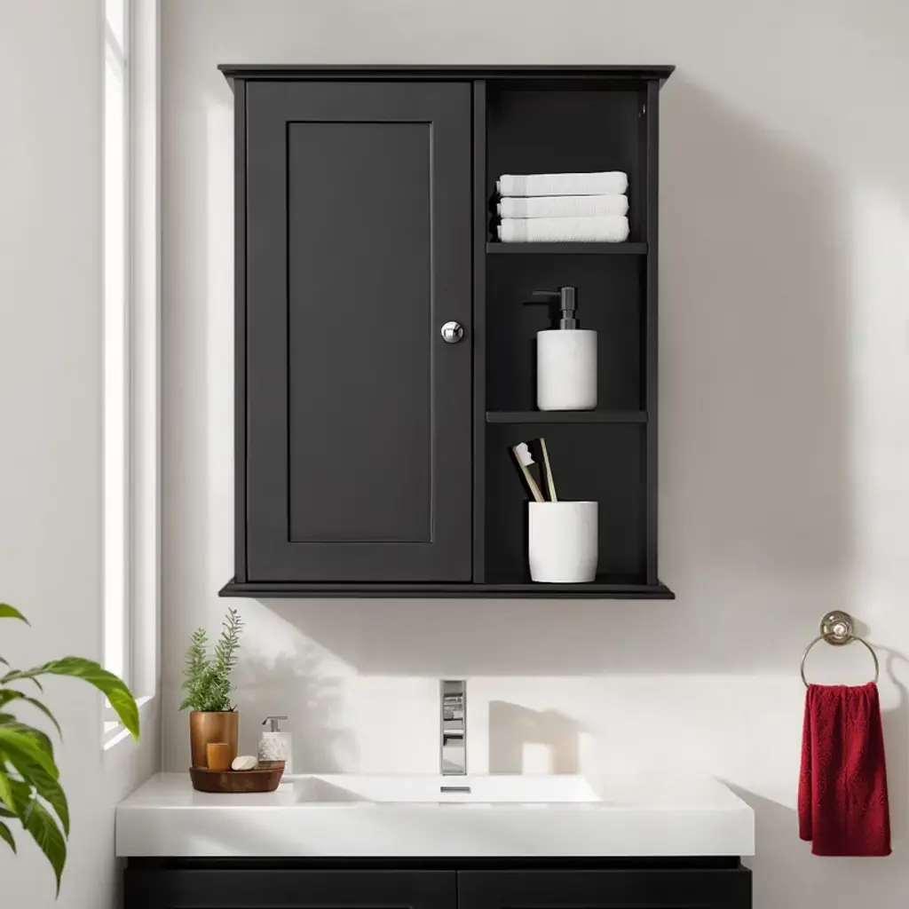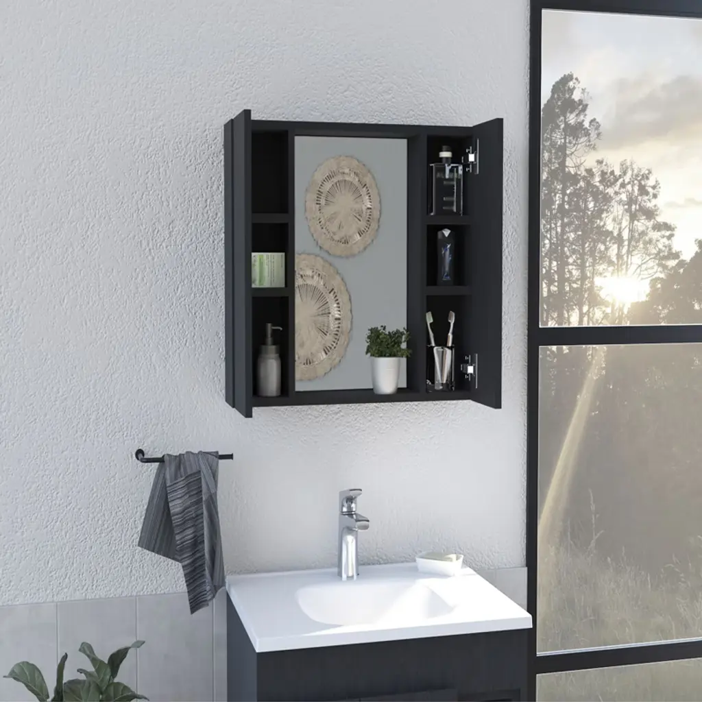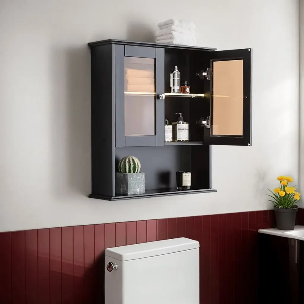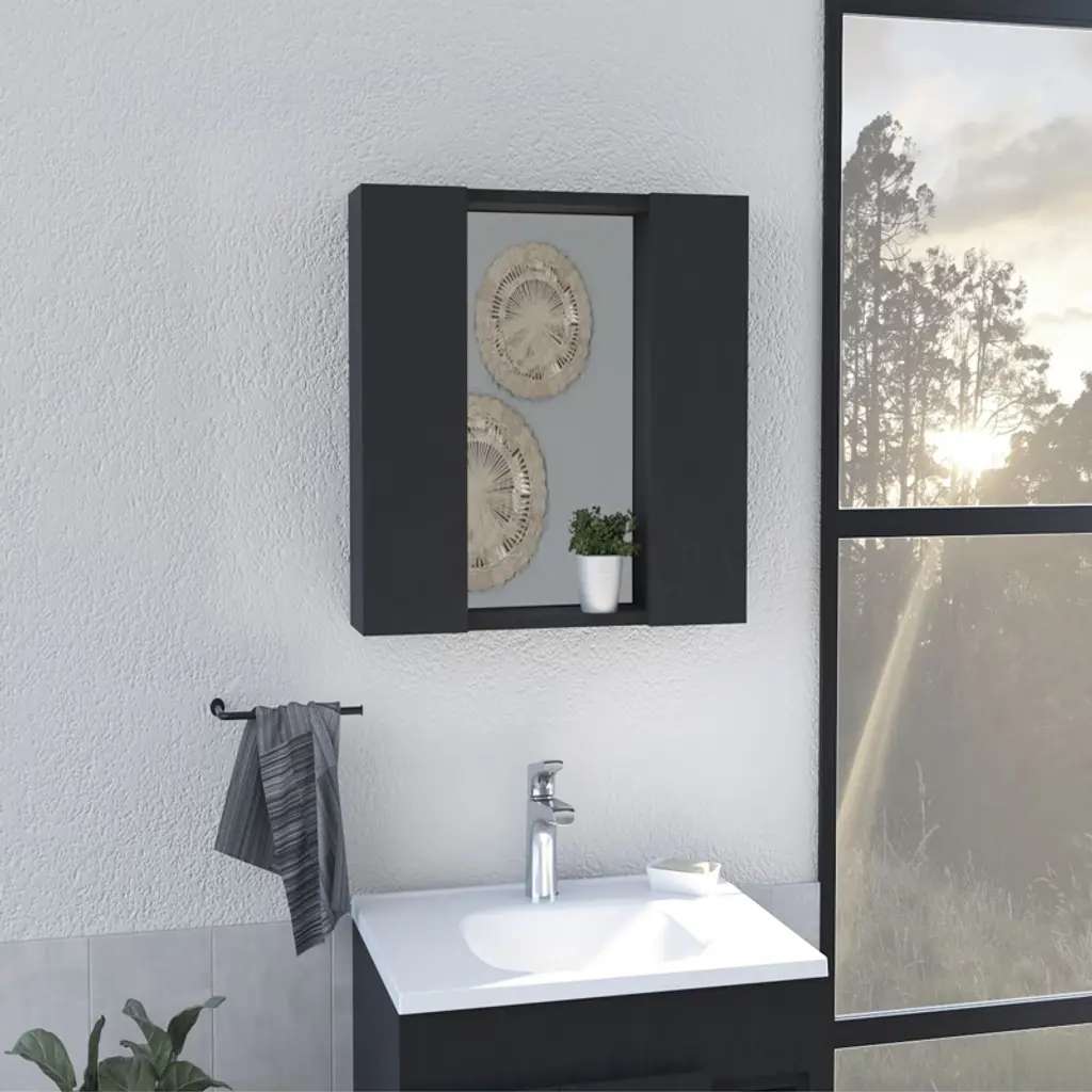 Sevobal Bathroom Storage Cabinets Double Door Cabinet With Mirror And Shelf For Bathroom Storage, Ideal For Toothbrush, Towel, Black, 28.3"*26.8"*3.9"